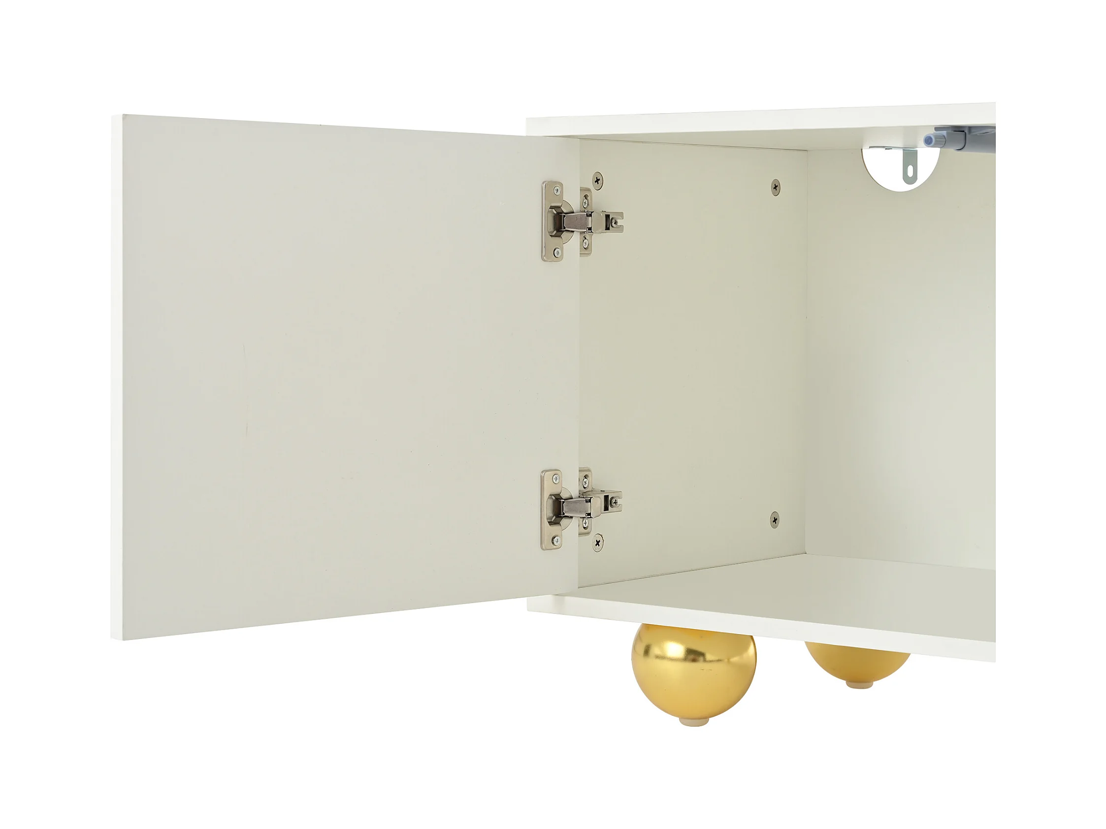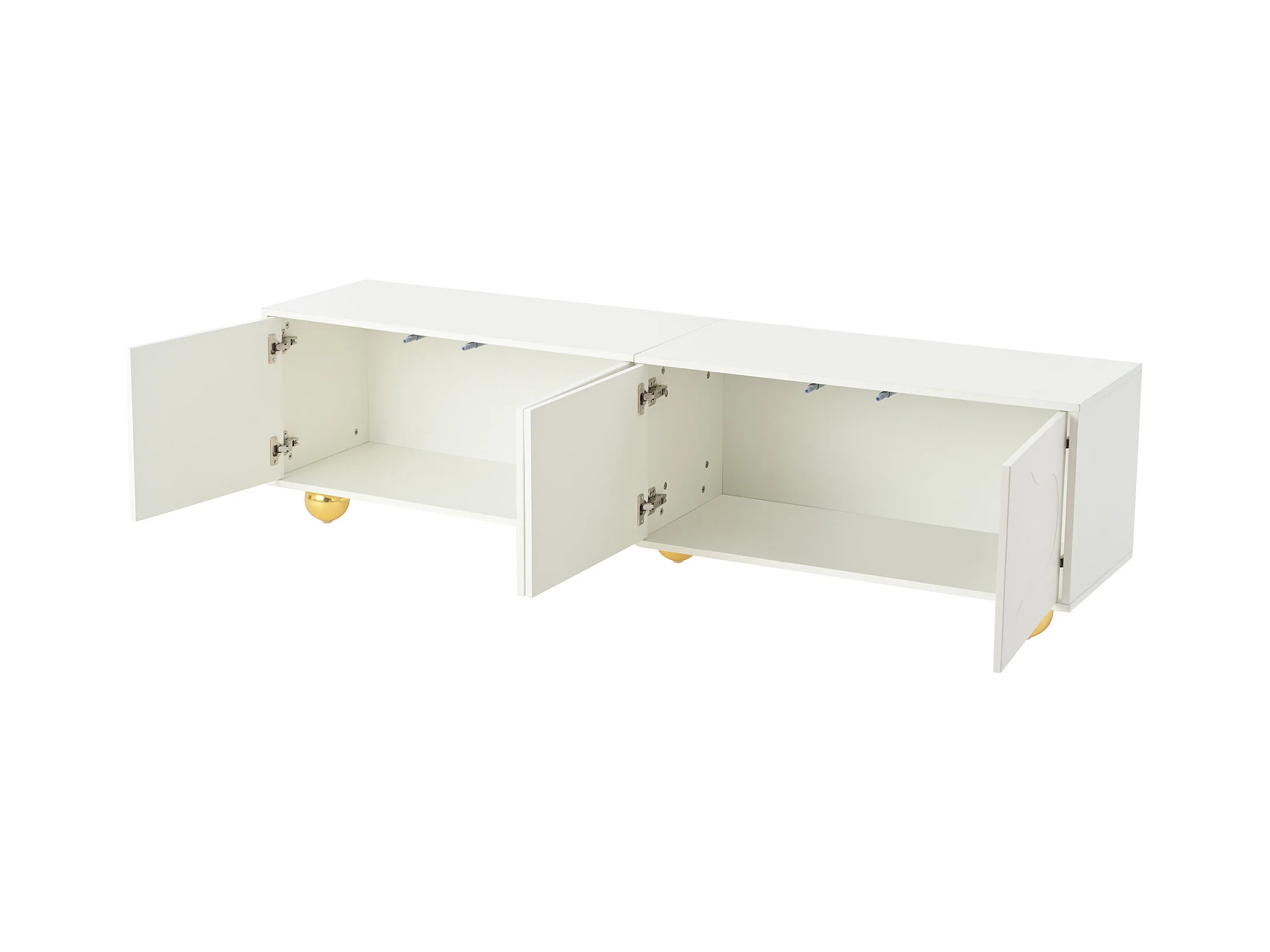 Meuble TV blanc de 180 cm avec 4 portes à motifs nuages ​​et 5 pieds dorés - pour salon