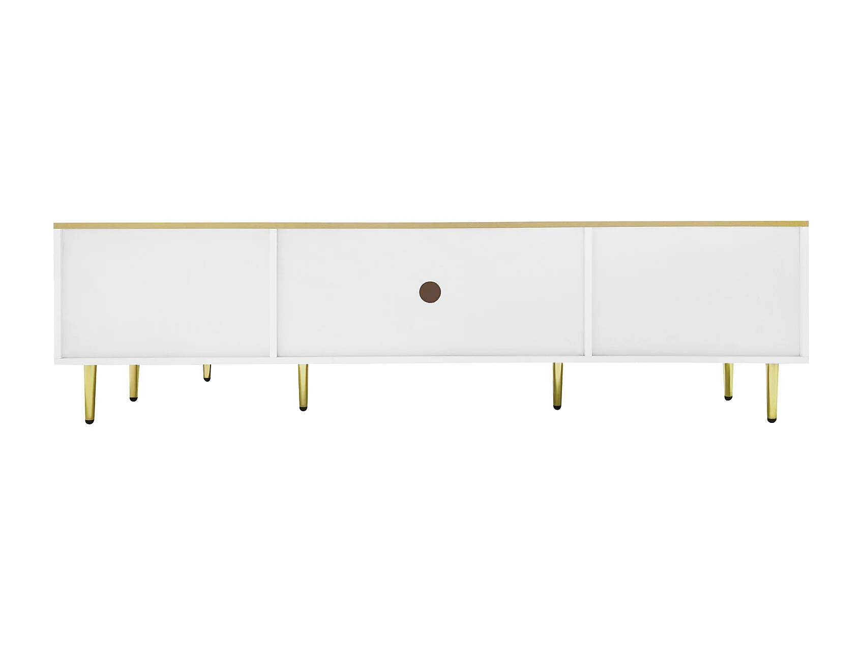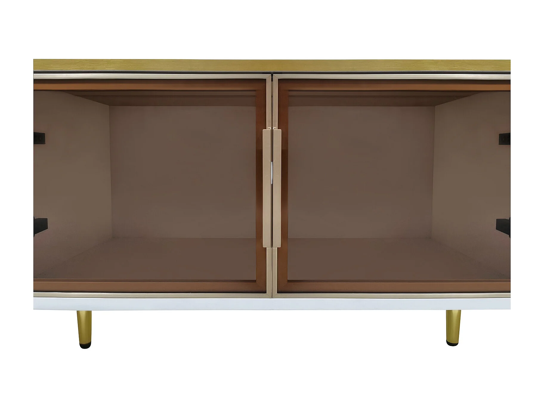 Meuble TV Blanc Meuble télé avec LED , Commode avec 4 tiroirs et 2 Portes en Verre trempé