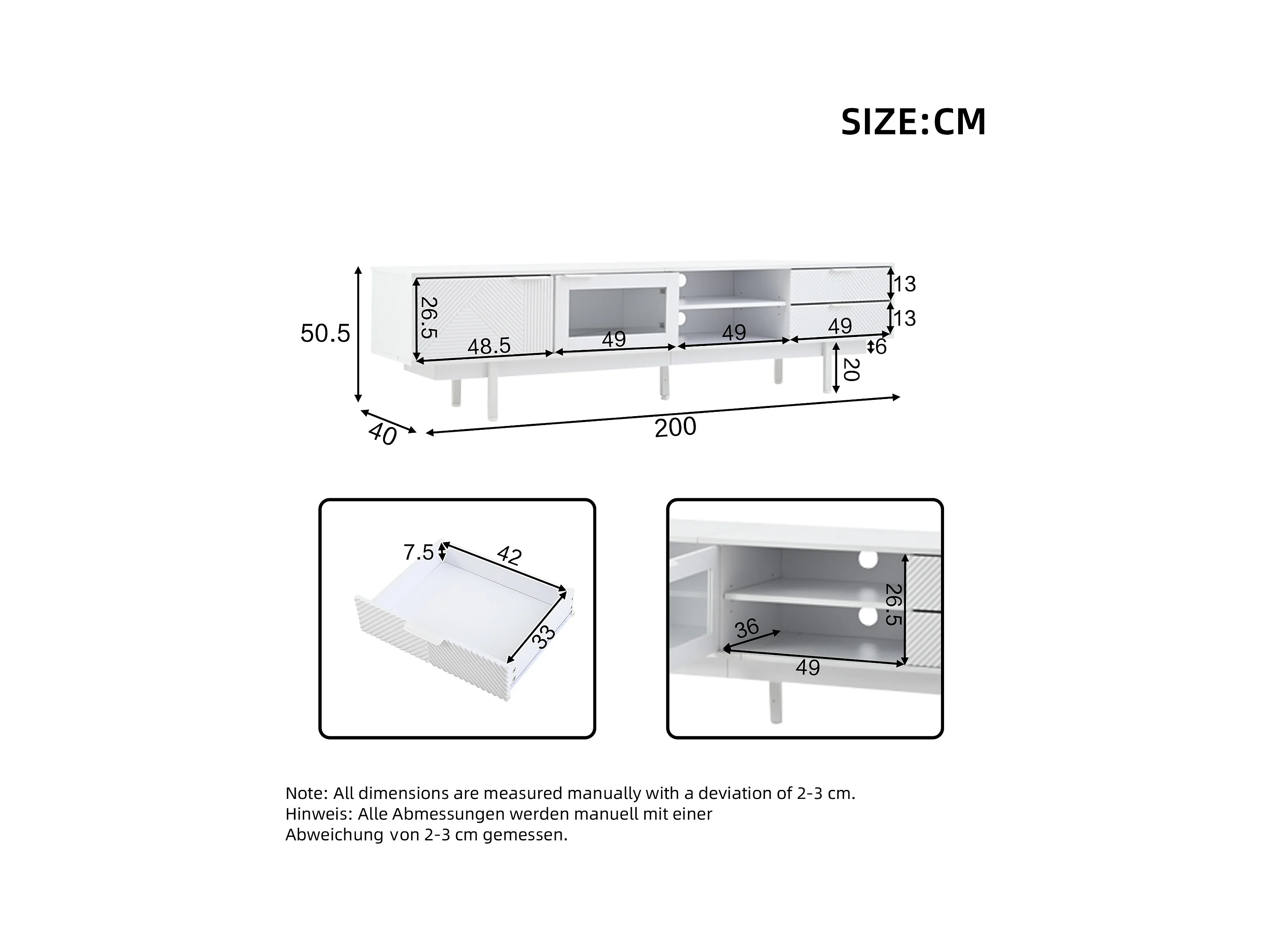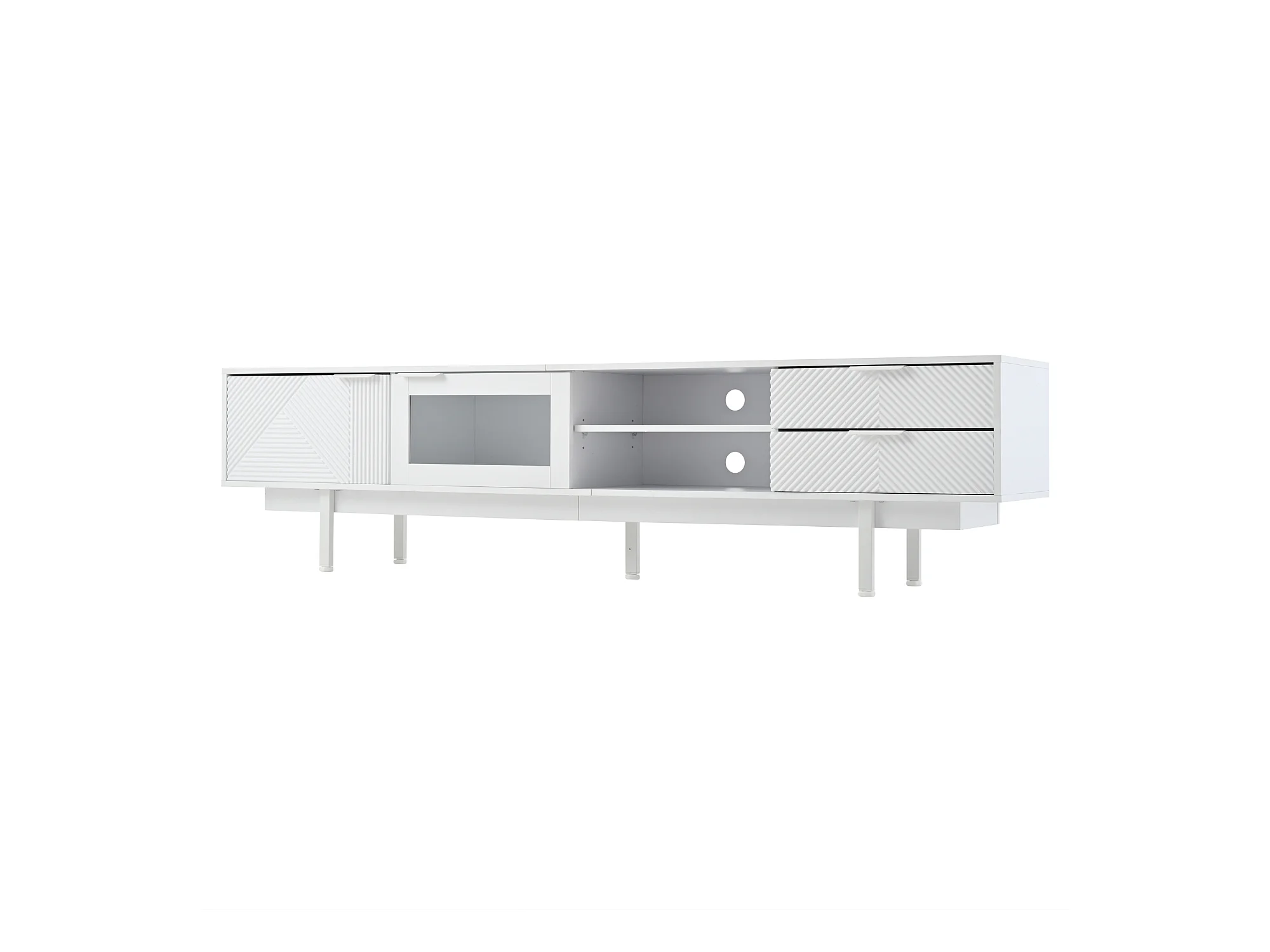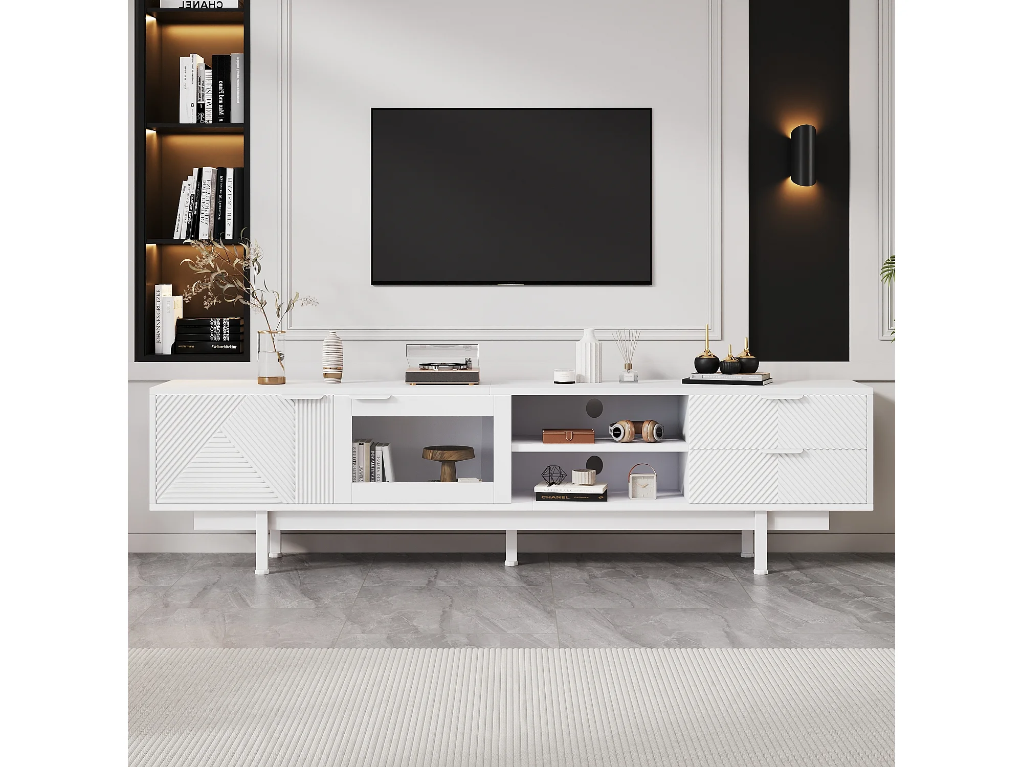 Meuble TV blanc - Meuble TV avec 2 portes et 2 tiroirs - rangement ouvert - pour salon