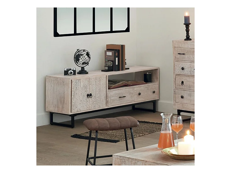 Meuble TV 2 Portes & 2 Tiroirs "Ajay" 140cm Beige