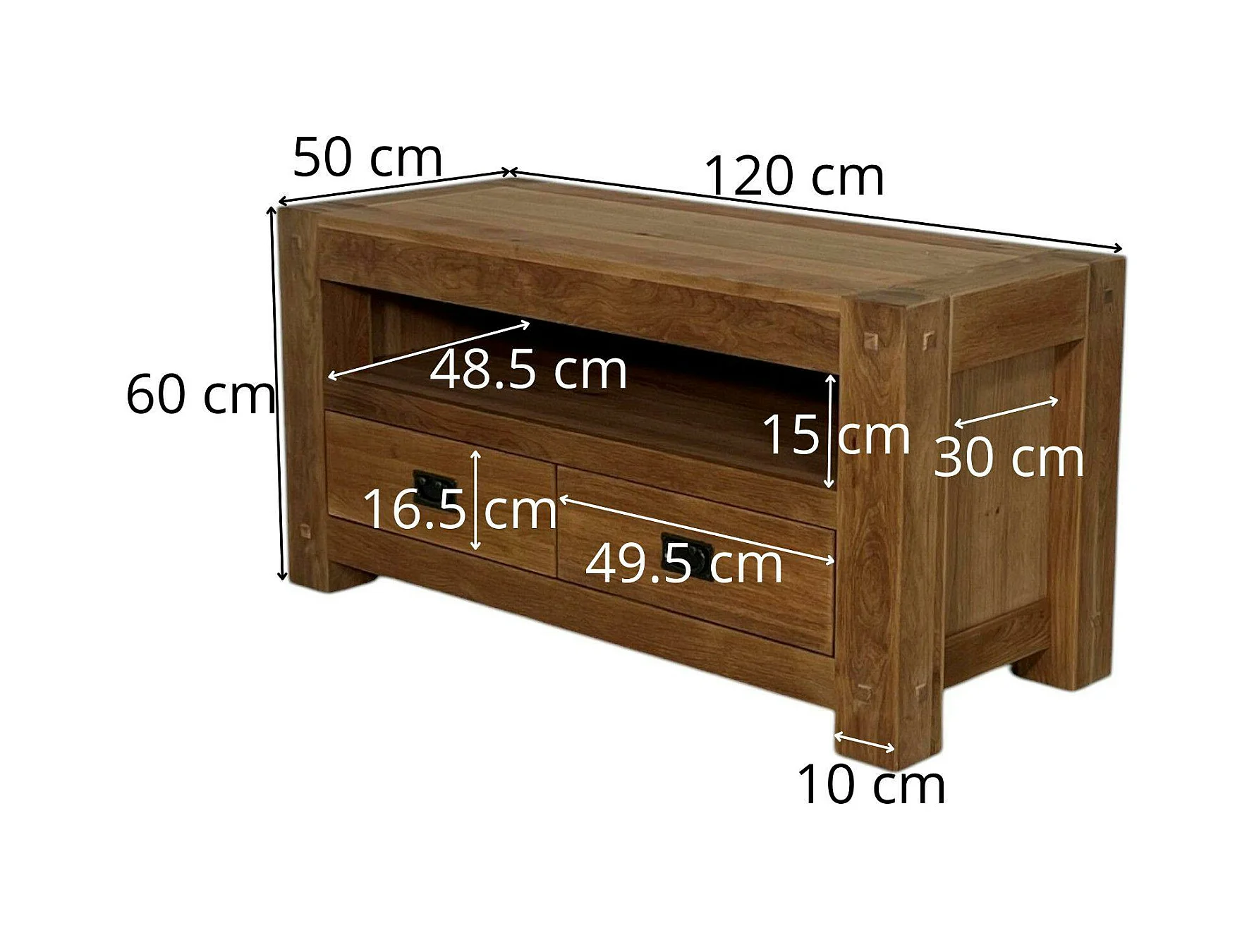Meuble TV bois de chêne 2 tiroirs FJORD