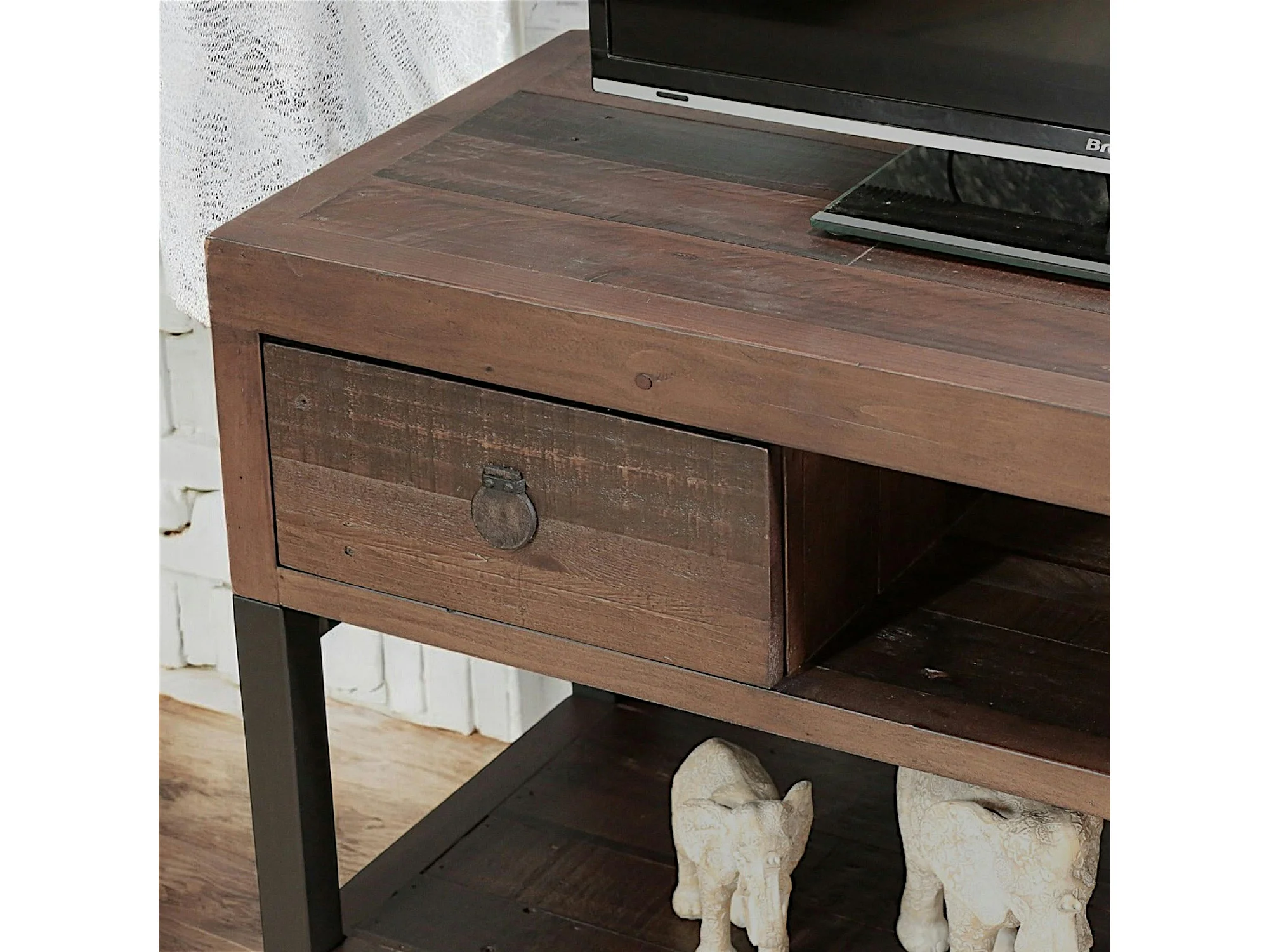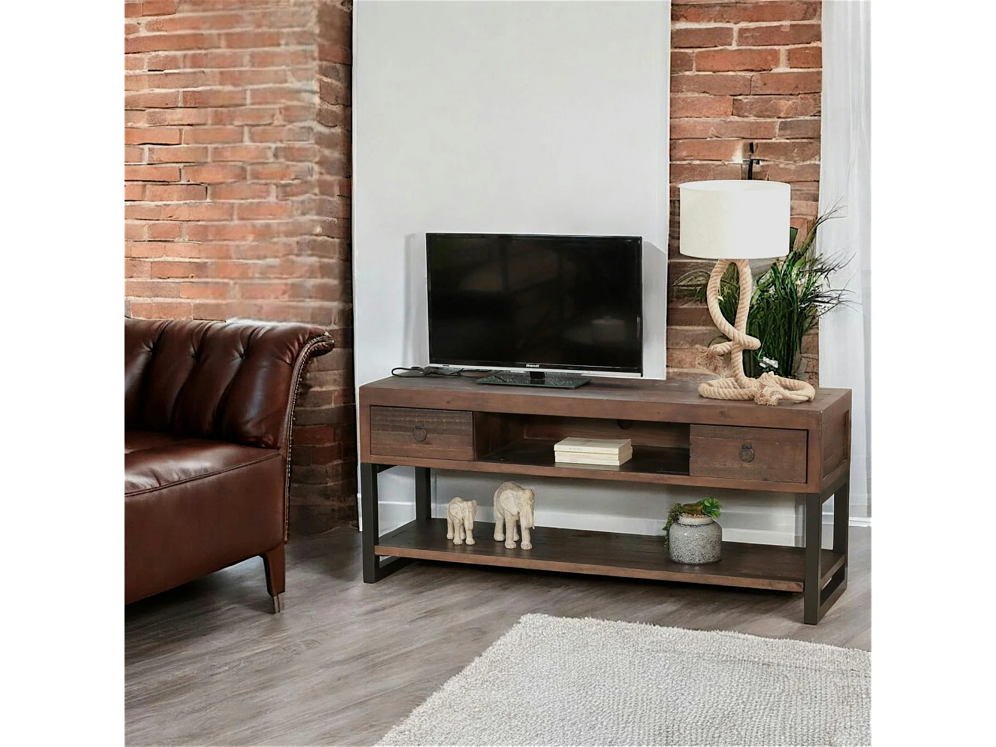 Meuble TV bois brun recyclé double plateau SAMOA