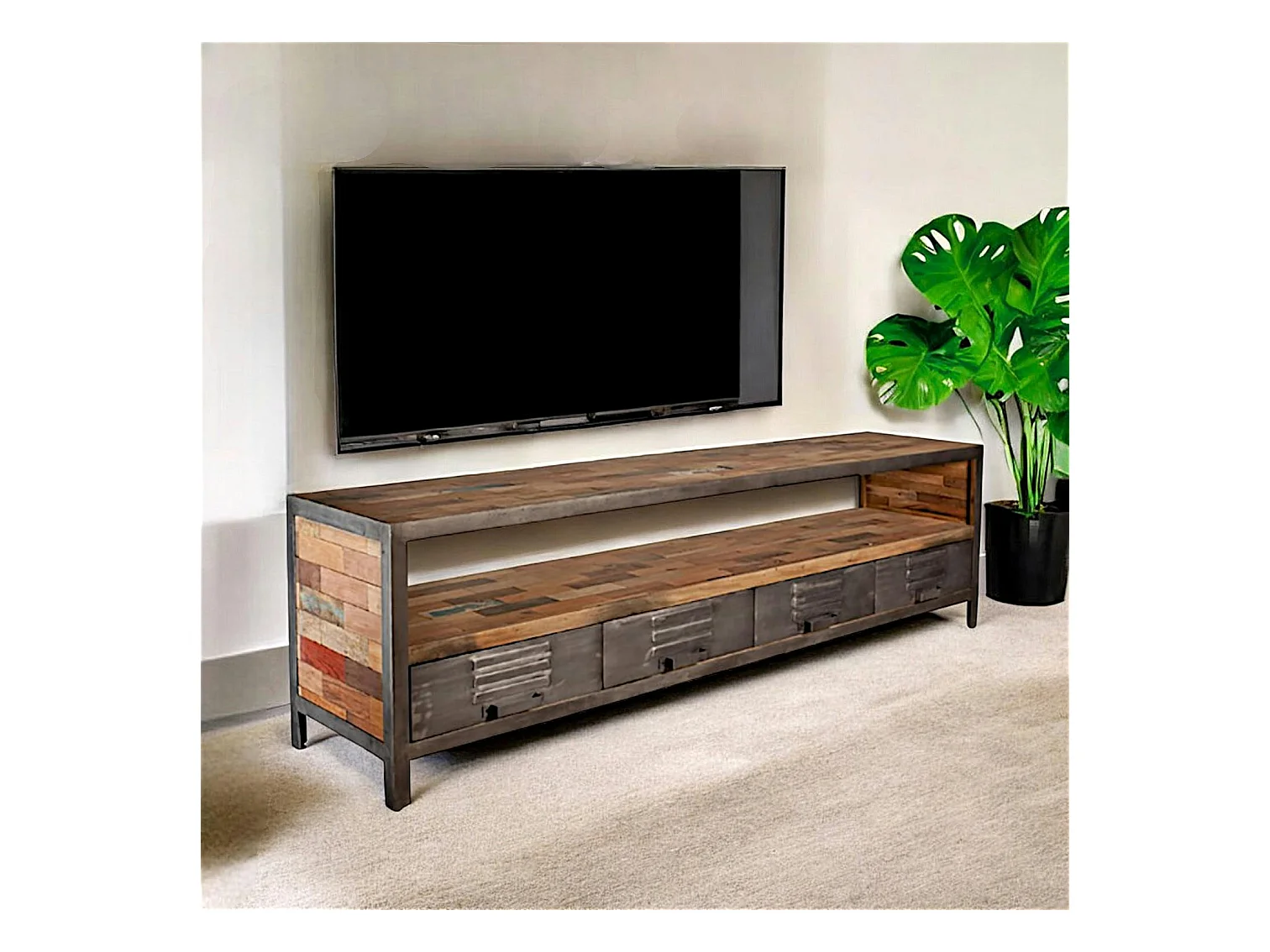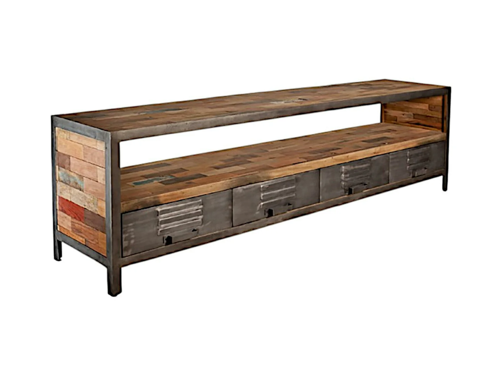 Meuble TV bois recyclé métal 4 tiroirs CARAVELLE