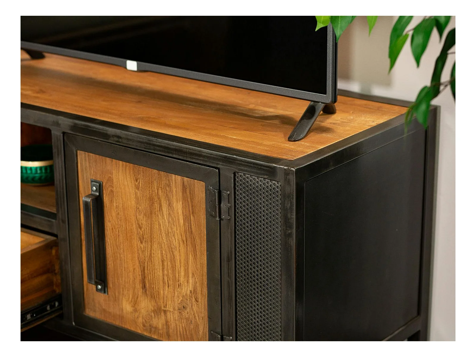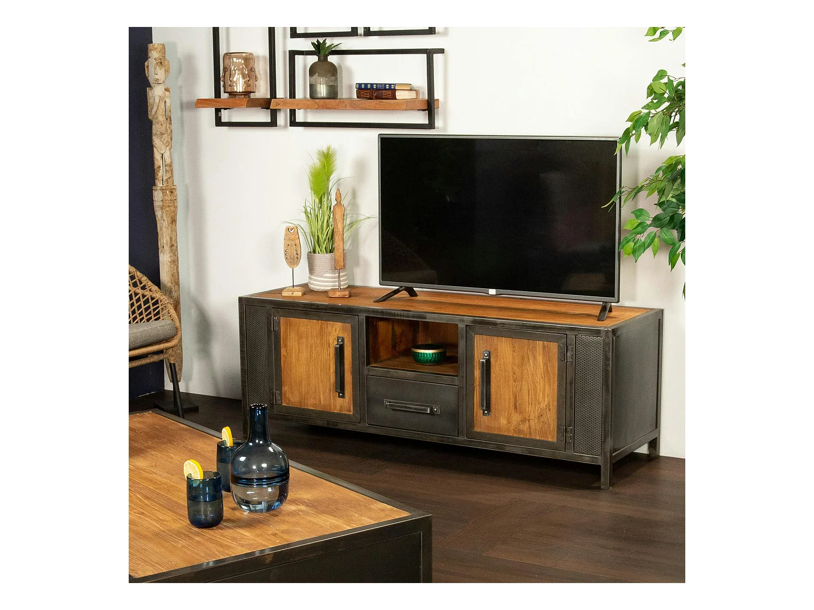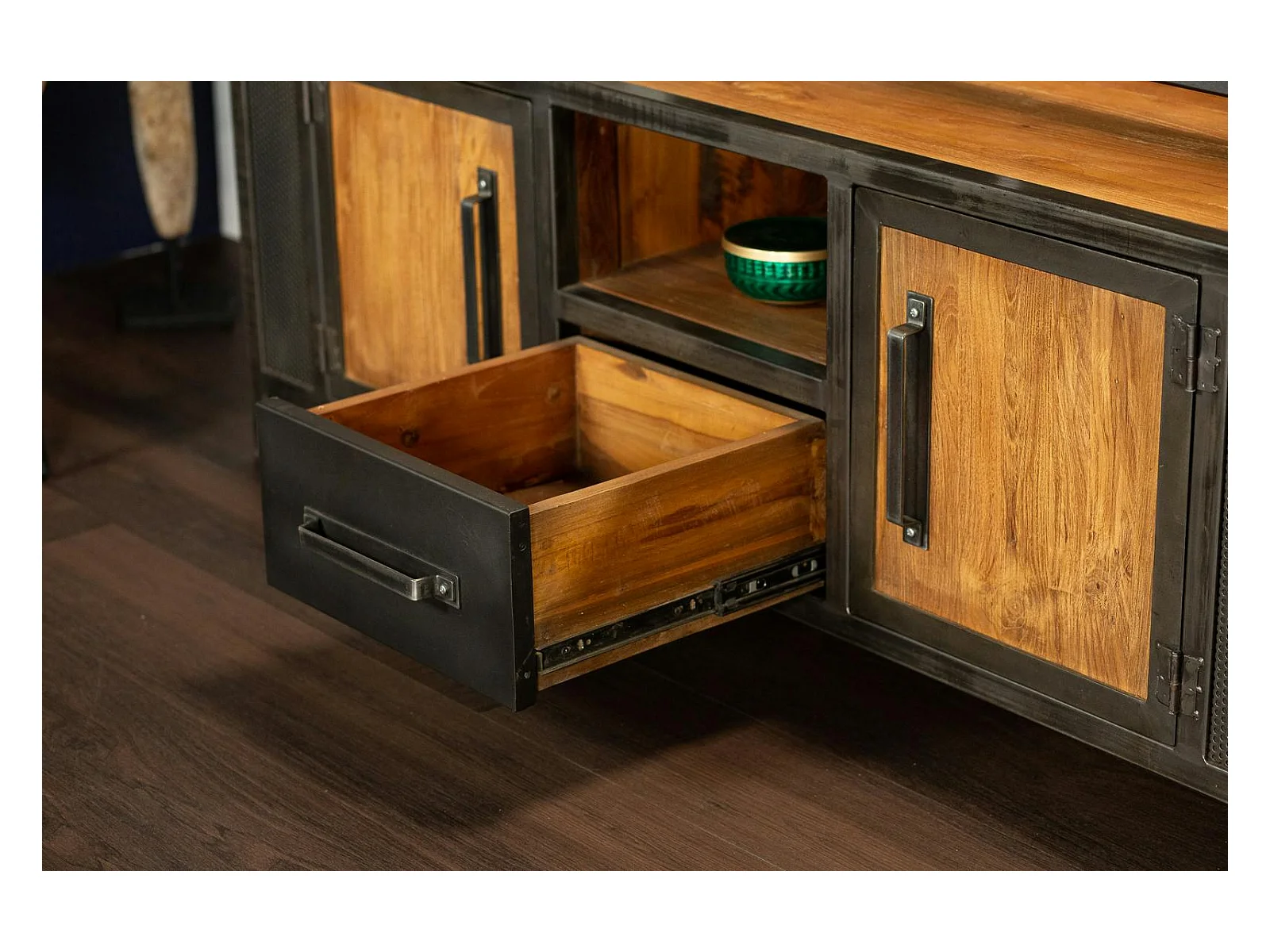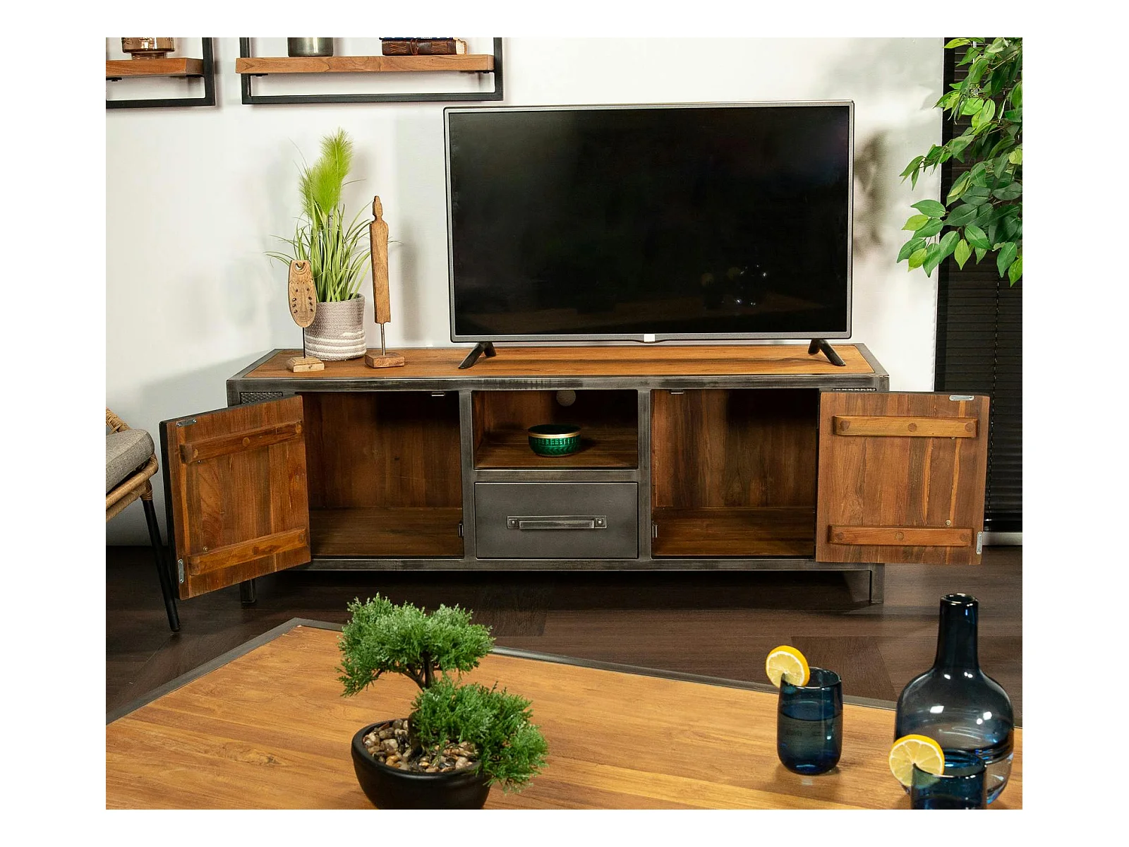Meuble tv bois recyclé teck métal vieilli CLEVELAND
