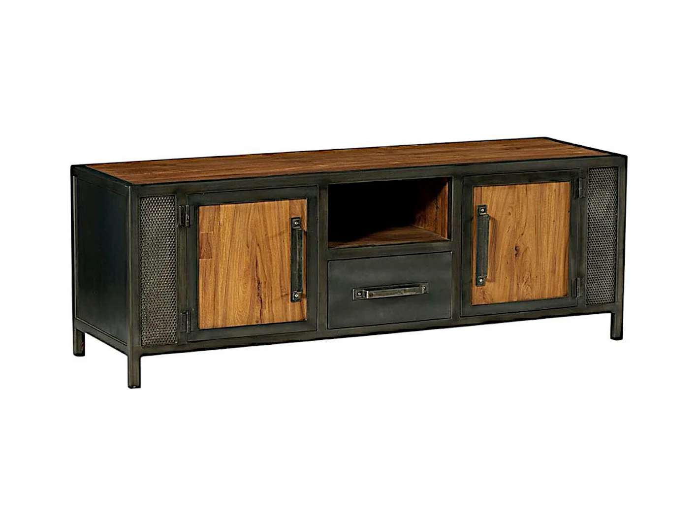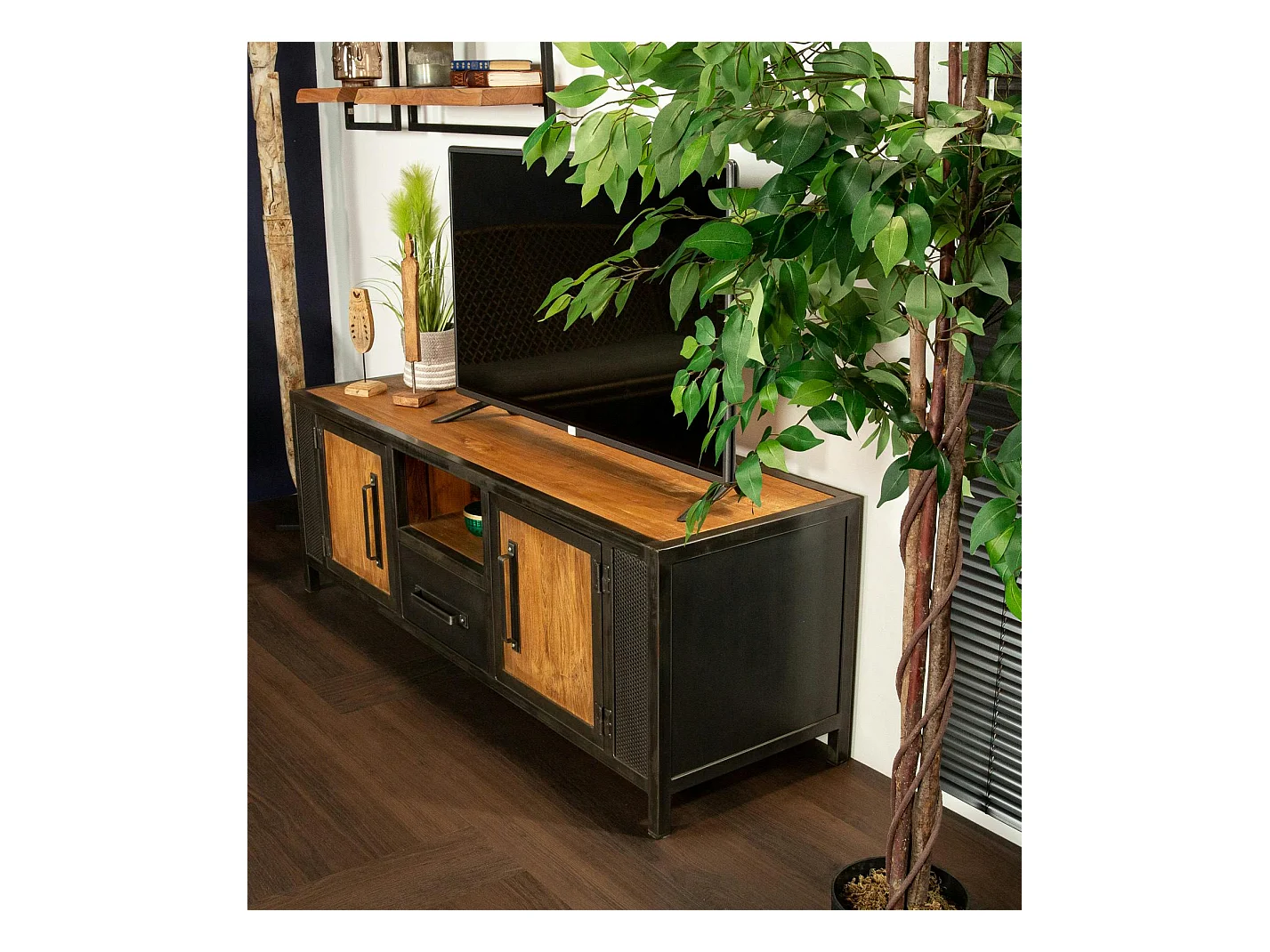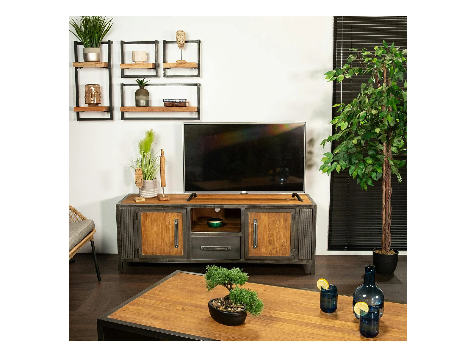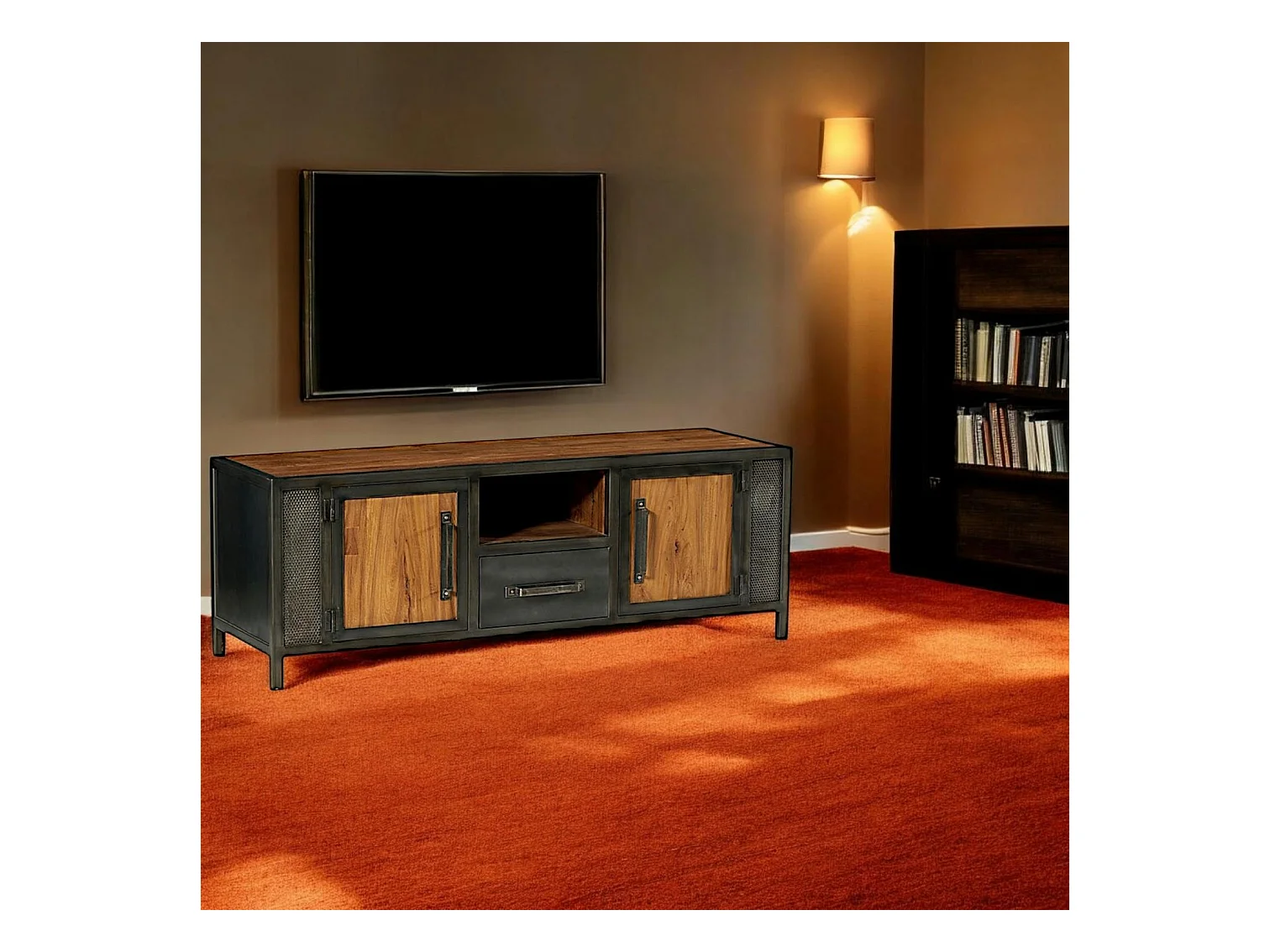 Meuble tv bois recyclé teck métal vieilli CLEVELAND