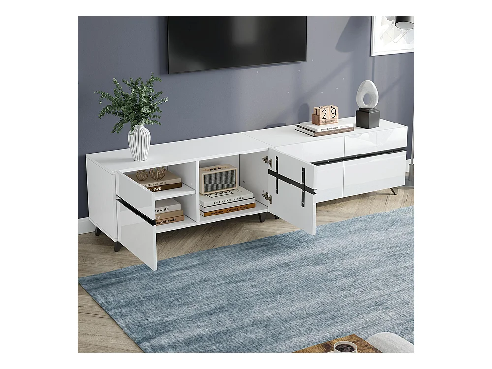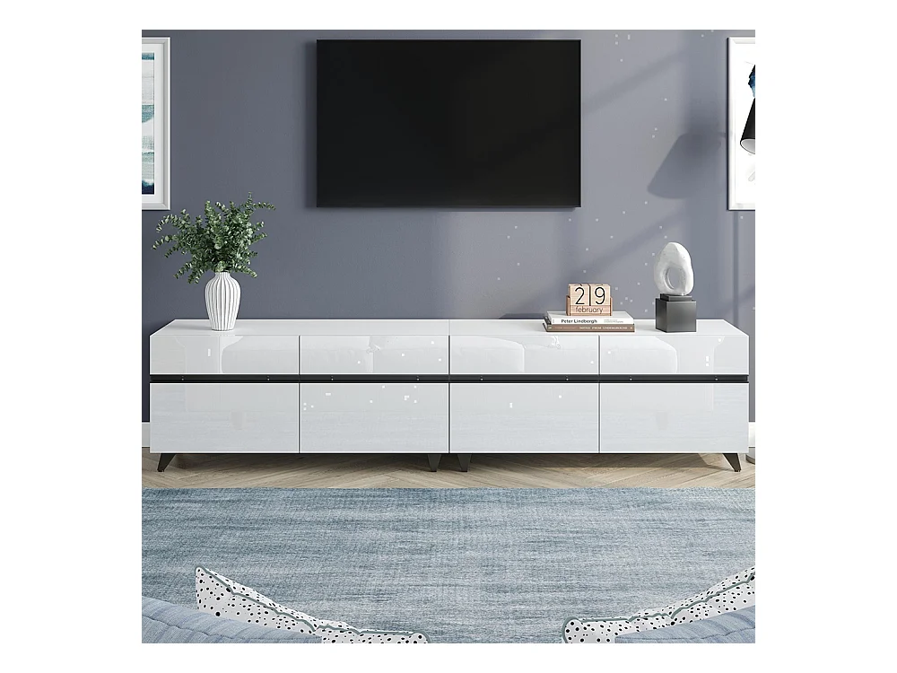 Meuble TV bas brillant 4 tiroirs LED TV 80 pouces blanc