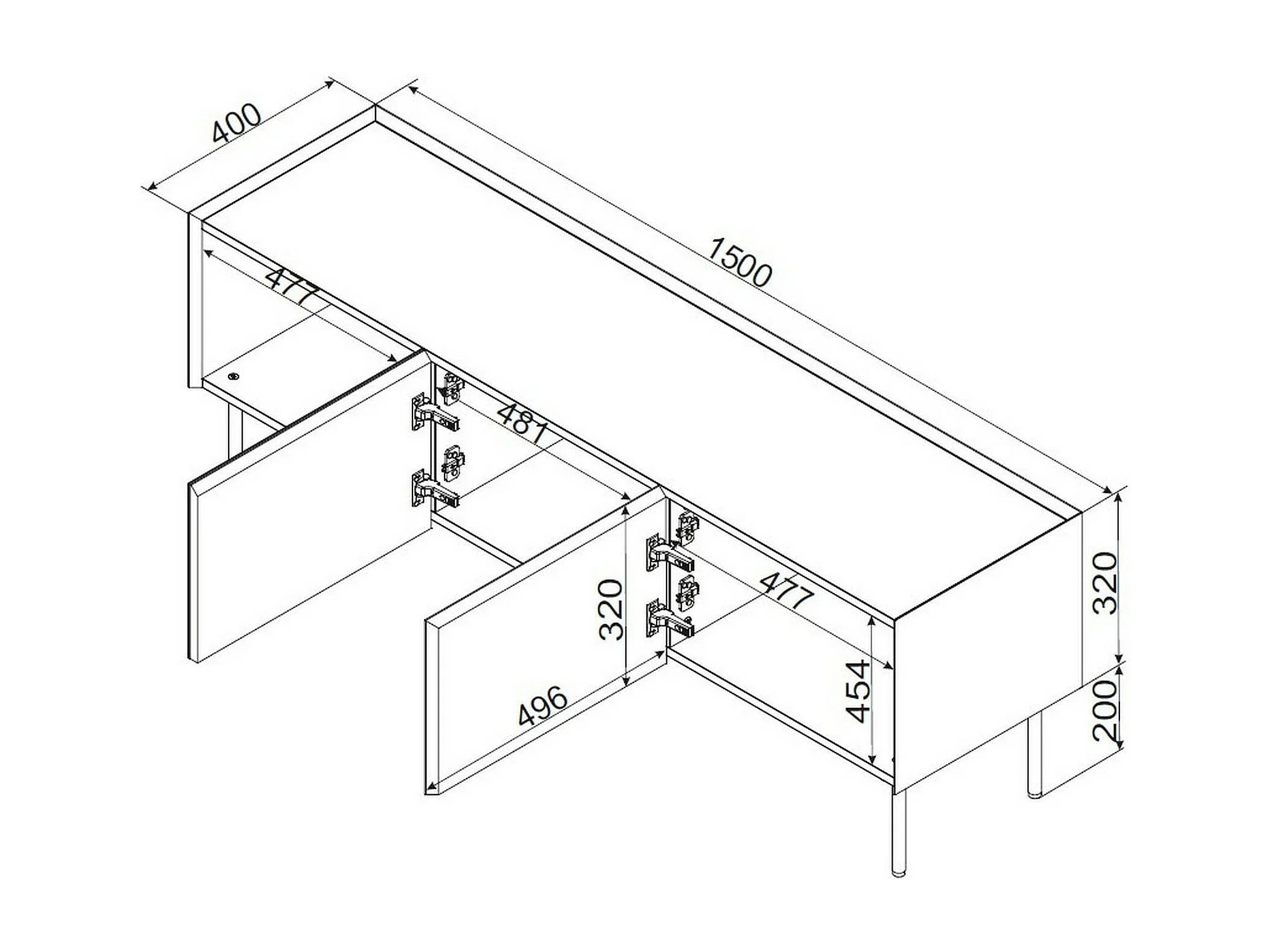 Meuble TV Vendas, avec étagère, 40x150x52h cm Vert Chêne