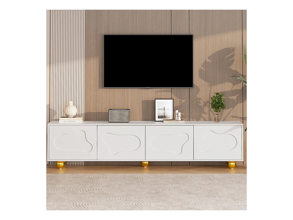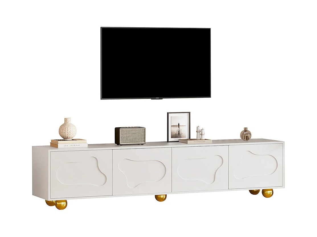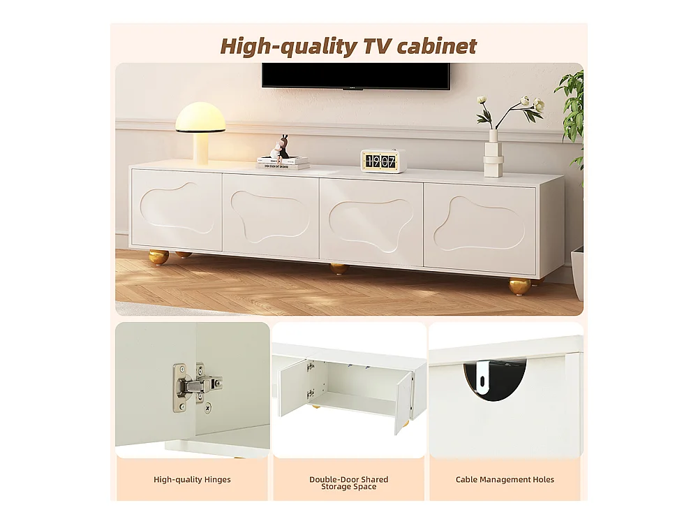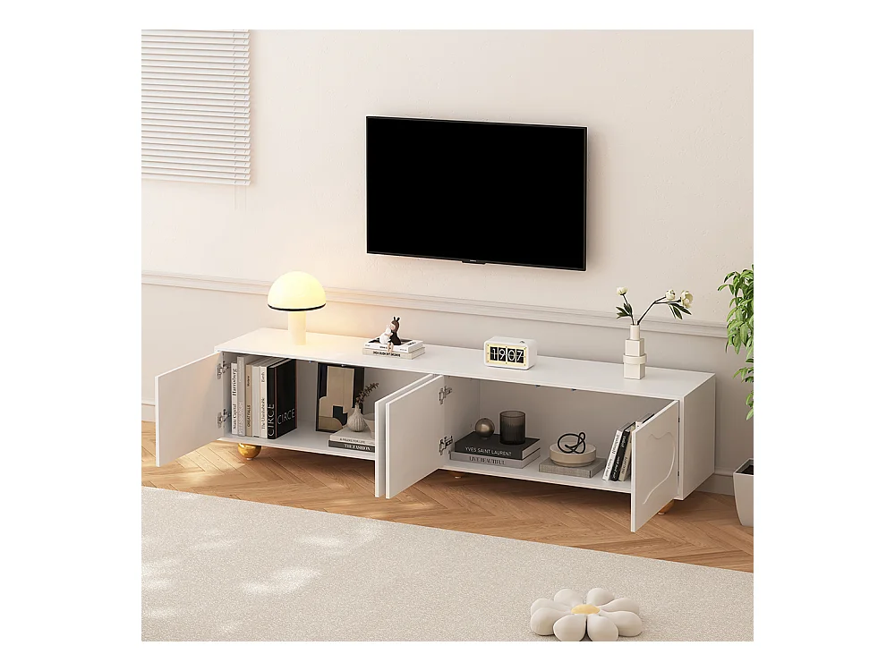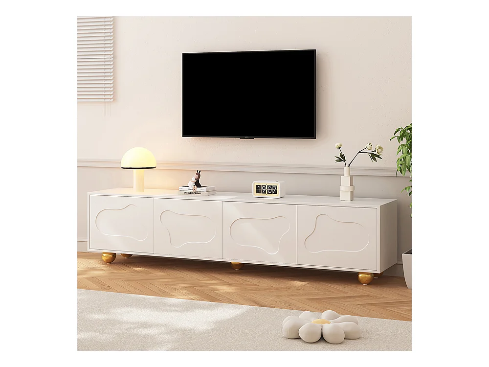 Meuble TV cartoon nuage 180x40x45 cm 2 armoires 5 pieds charge 60 kg TV 75 pouces