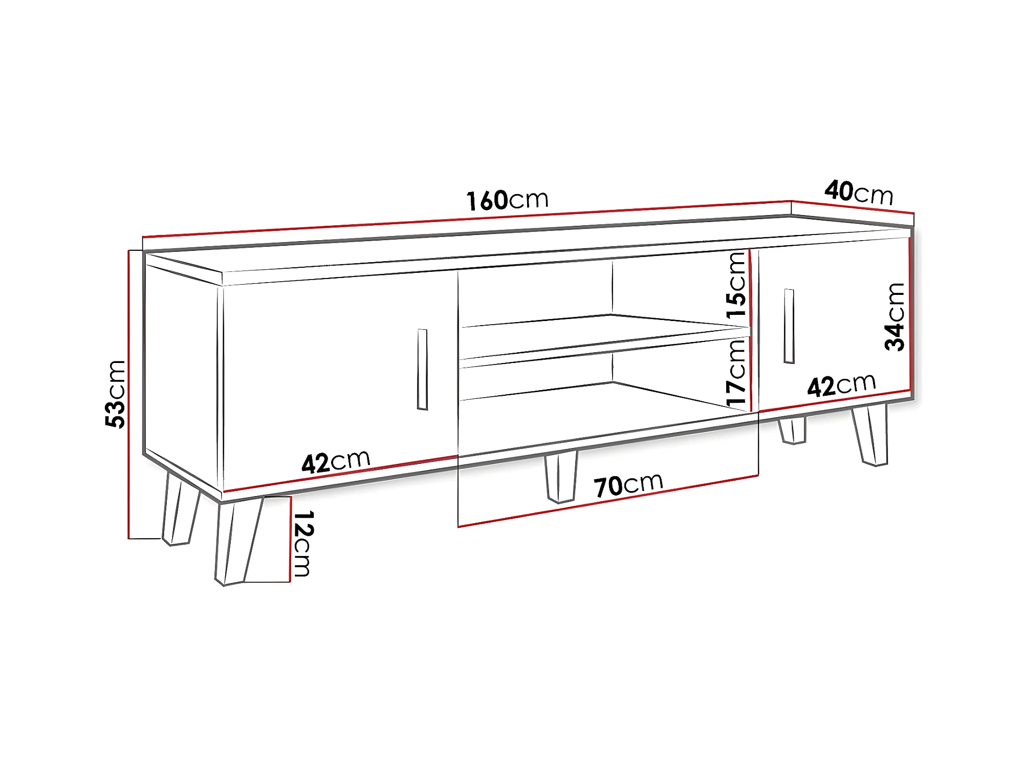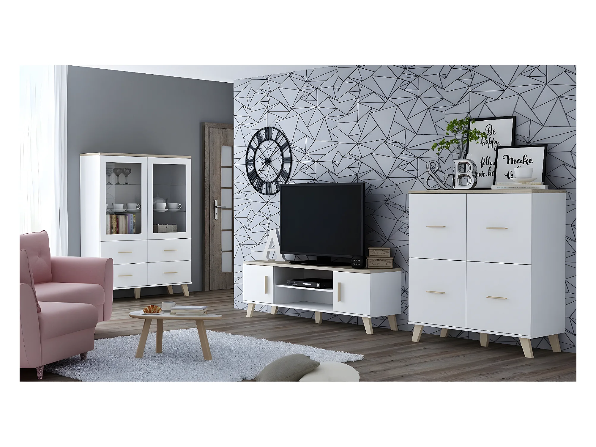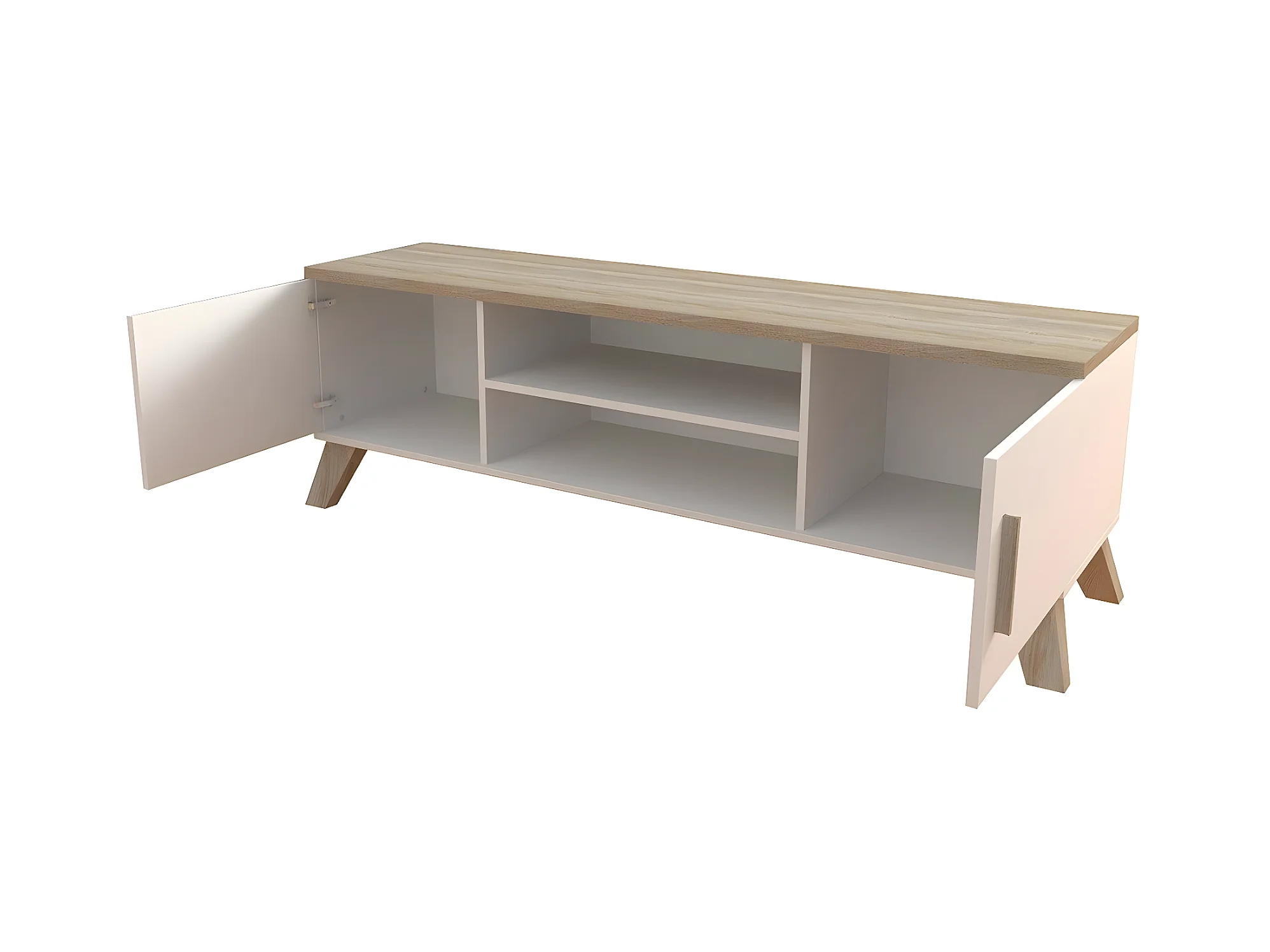 Meuble TV Larfloi 108, Sonoma chêne|Blanc, Le nombre de portes: 2, 160x53x40cm