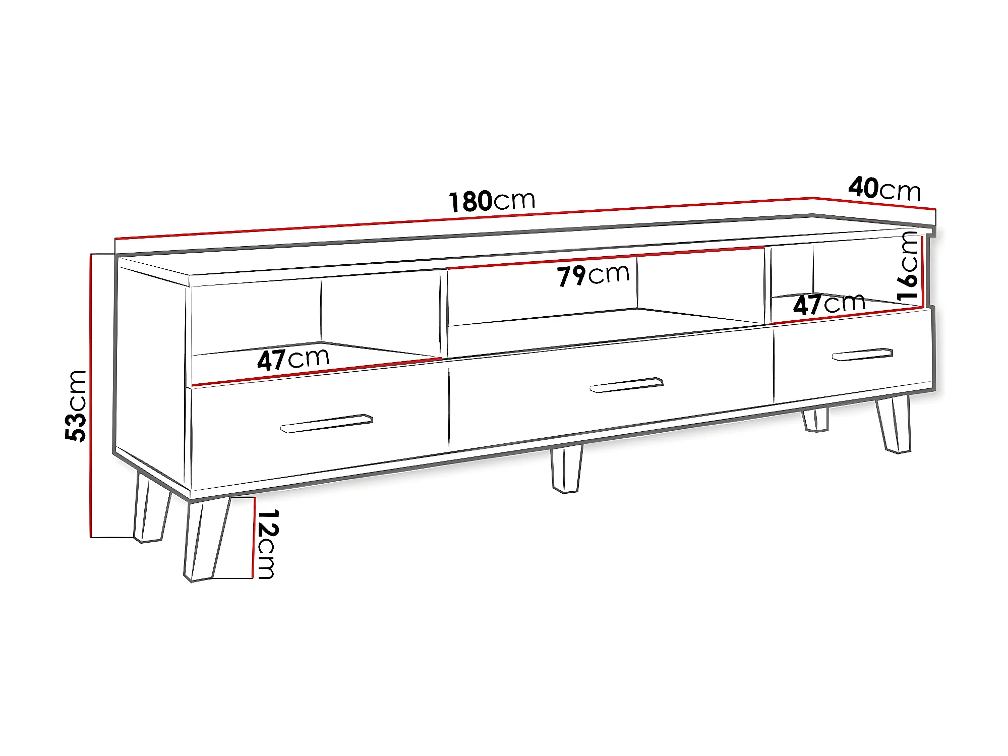 Meuble TV Larfloi 109, Chêne wotan|Noir, Nombre de tiroirs: 3, 180x53x40cm