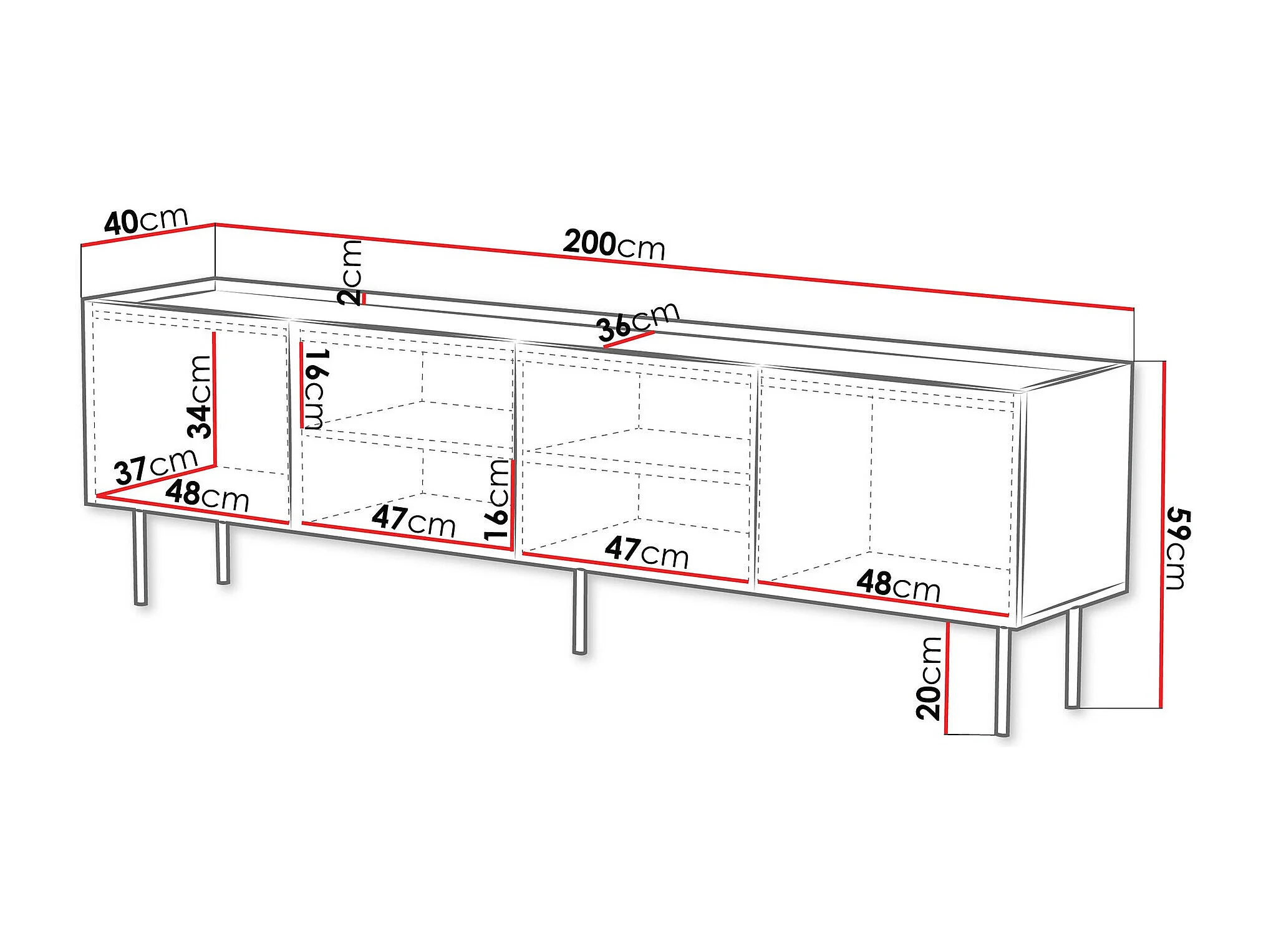 Meuble TV Mortali 104, Noir, 200x59x40cm