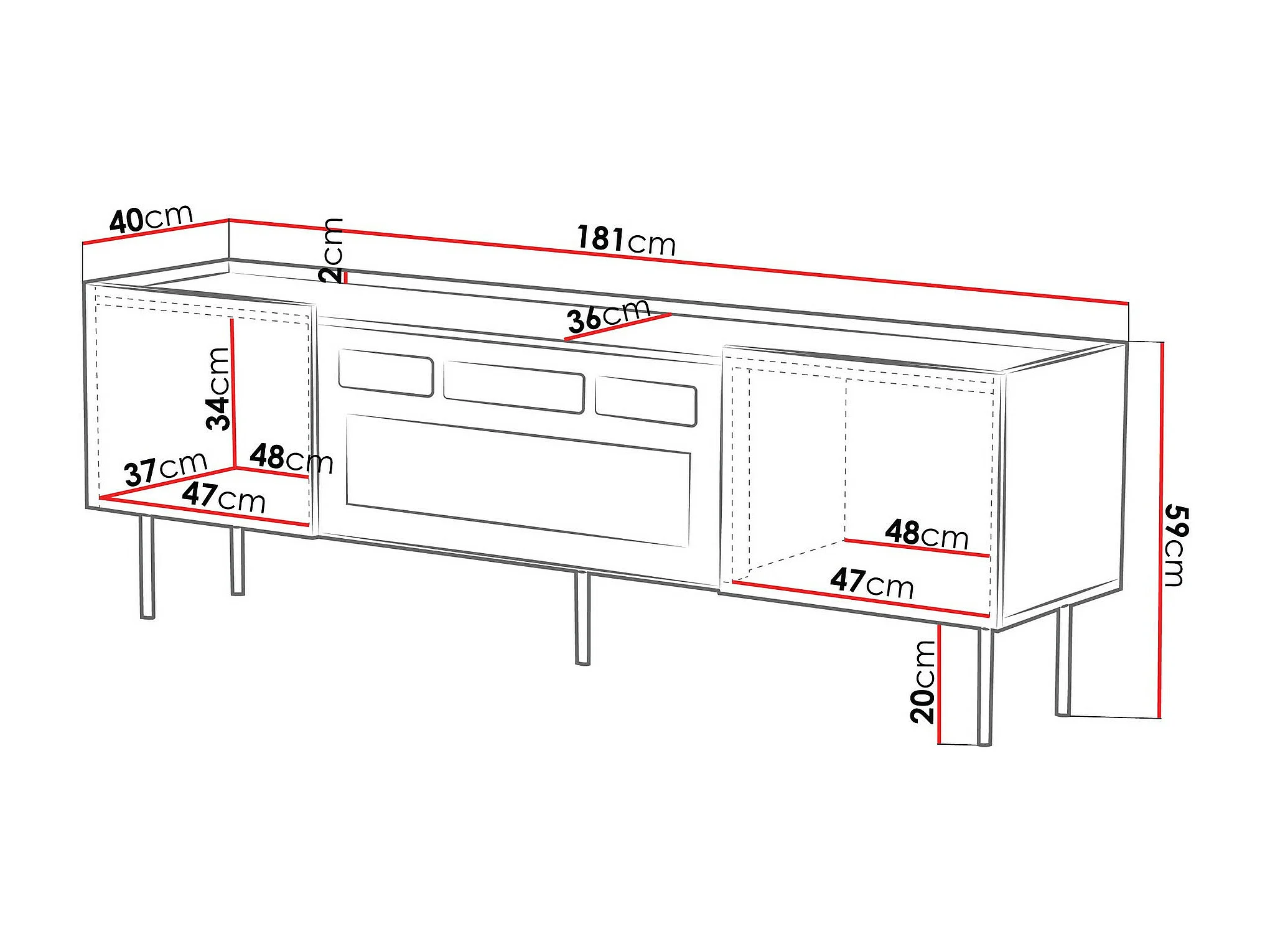 Meuble TV Mortali 106, Cachemire|Noir, 181x59x40cm