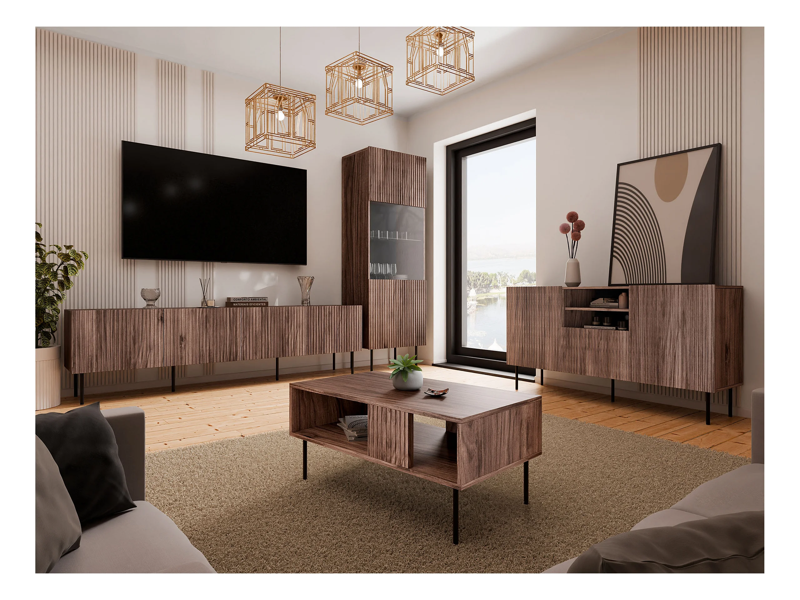 Meuble TV Melala 104, Noyer|Noir, 201x58x40cm