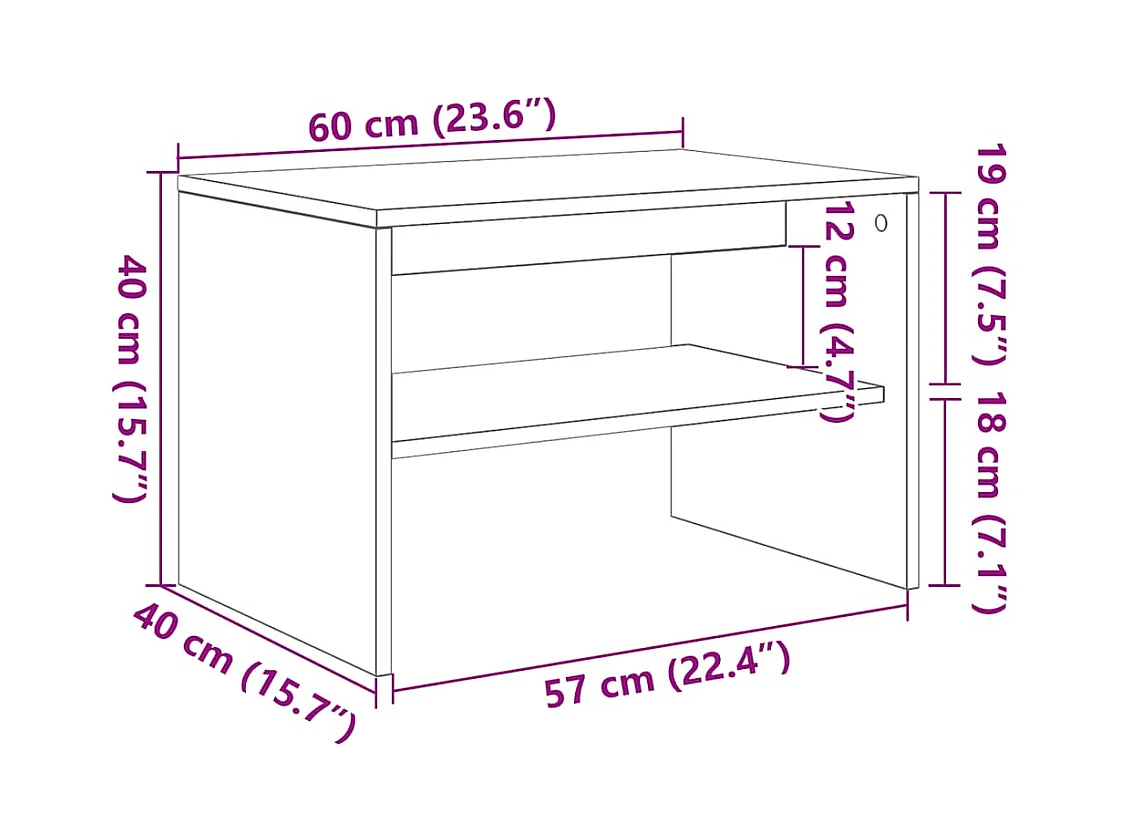 Meuble TV chêne artisanal 60x40x40 cm bois d'ingénierie