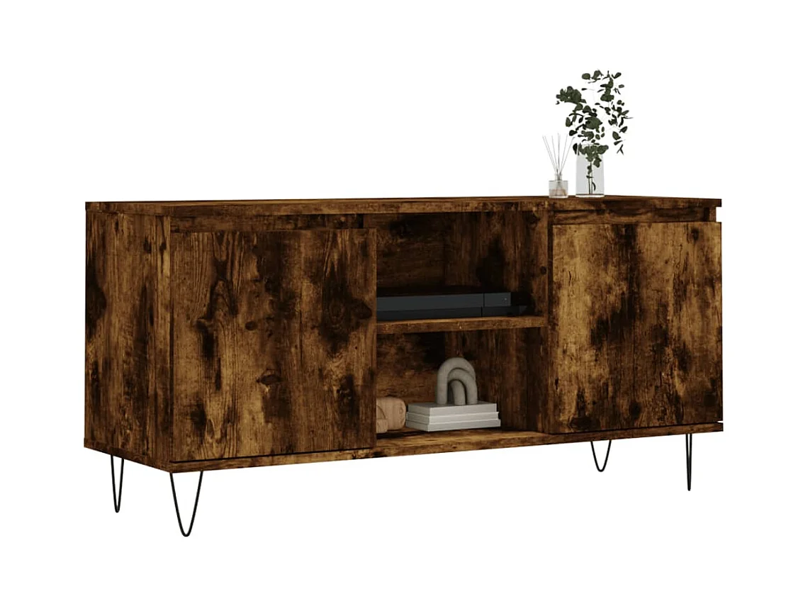 Meuble TV chêne fumé 104x35x50 bois d'ingénierie