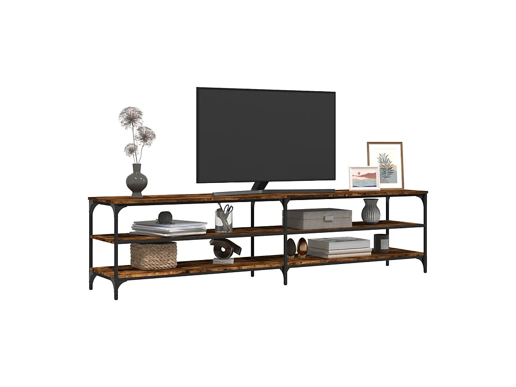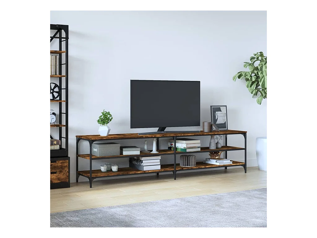 Meuble TV Chêne fumé 200x30x50 cm bois d'ingénierie et métal LWW46126