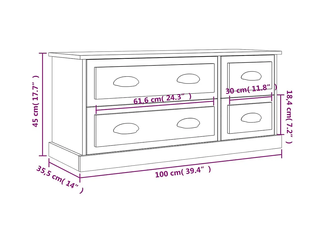 Meuble TV chêne fumé 100x35x45 bois d'ingénierie