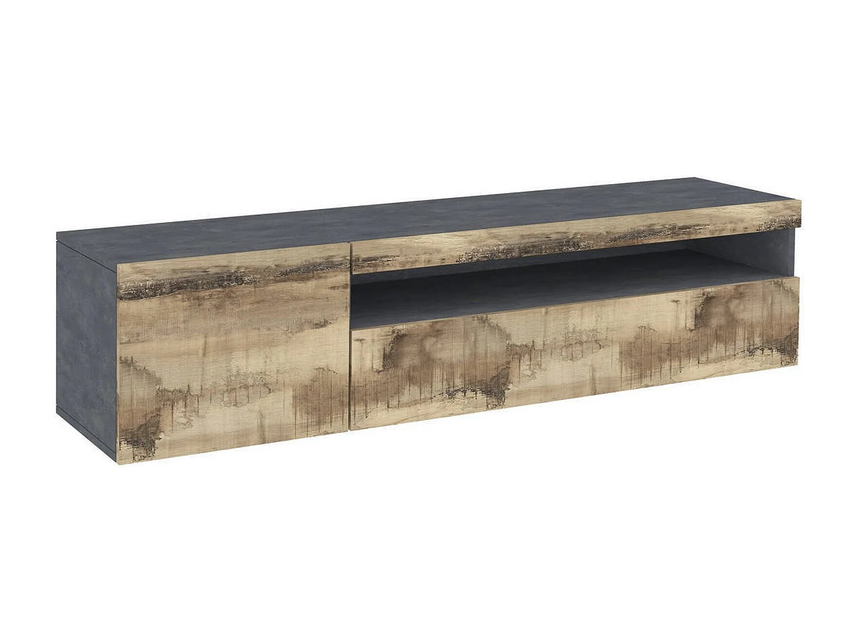 Meuble TV Claudio, Buffet bas de salon, Base pour meuble TV, 100% Made in Italy, 150x40h37 cm, Ardoise et Érable