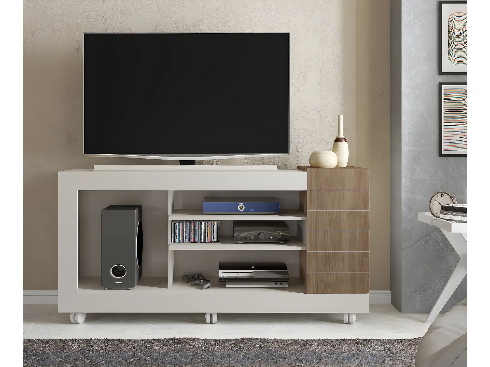 Meuble TV coloris Beige / Chêne Buriti - longueur 150 x profondeur 38 x hauteur 69 cm