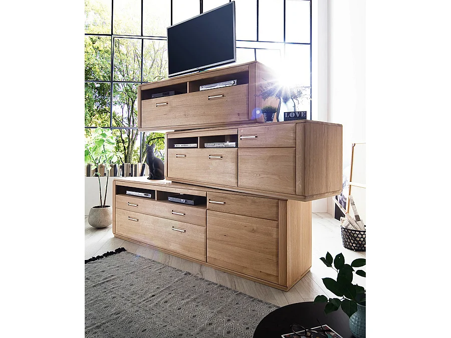 Meuble TV coloris chêne blanchi huilé - Longueur 179 x Hauteur 54 x Profondeur 51 cm