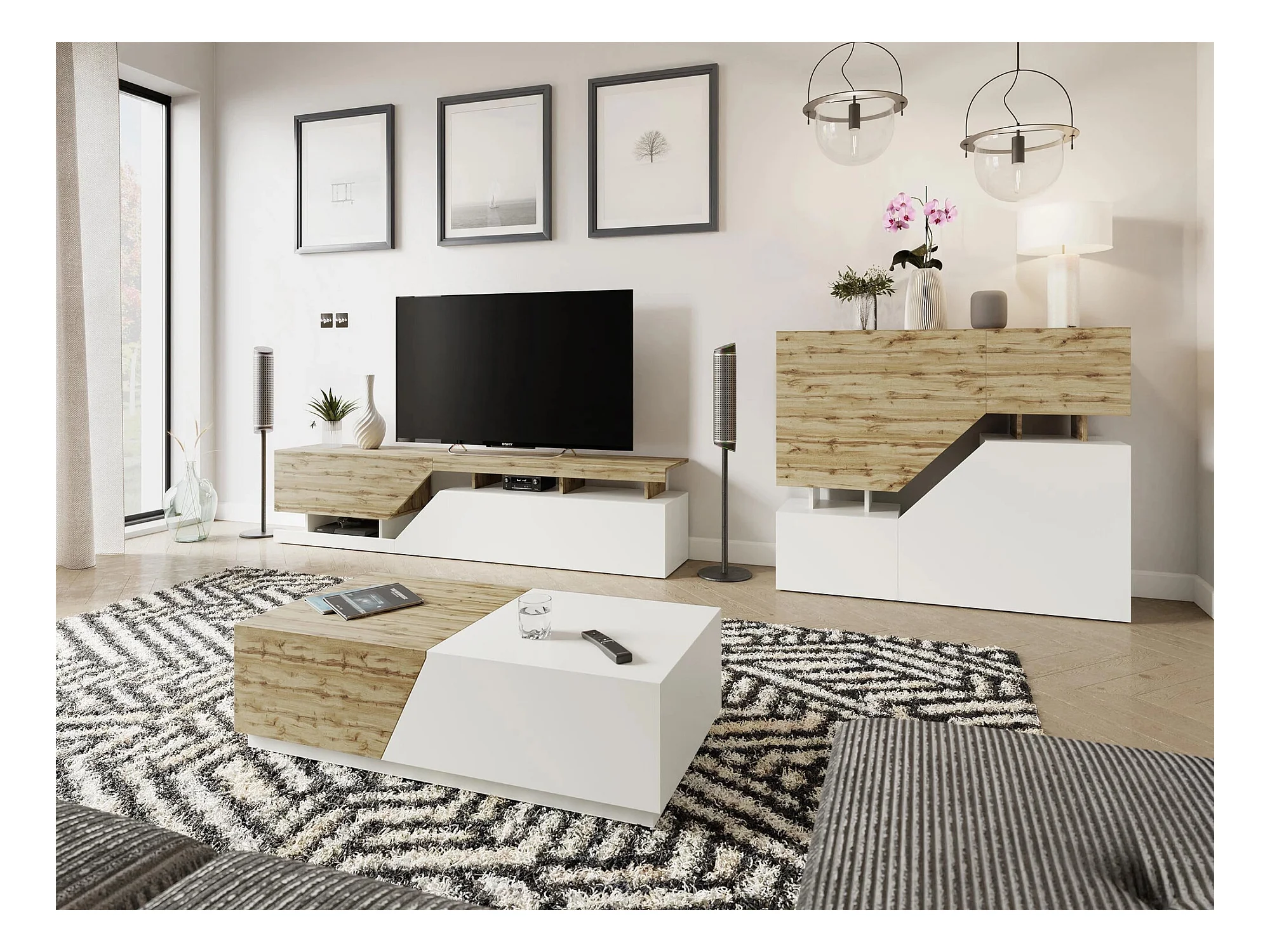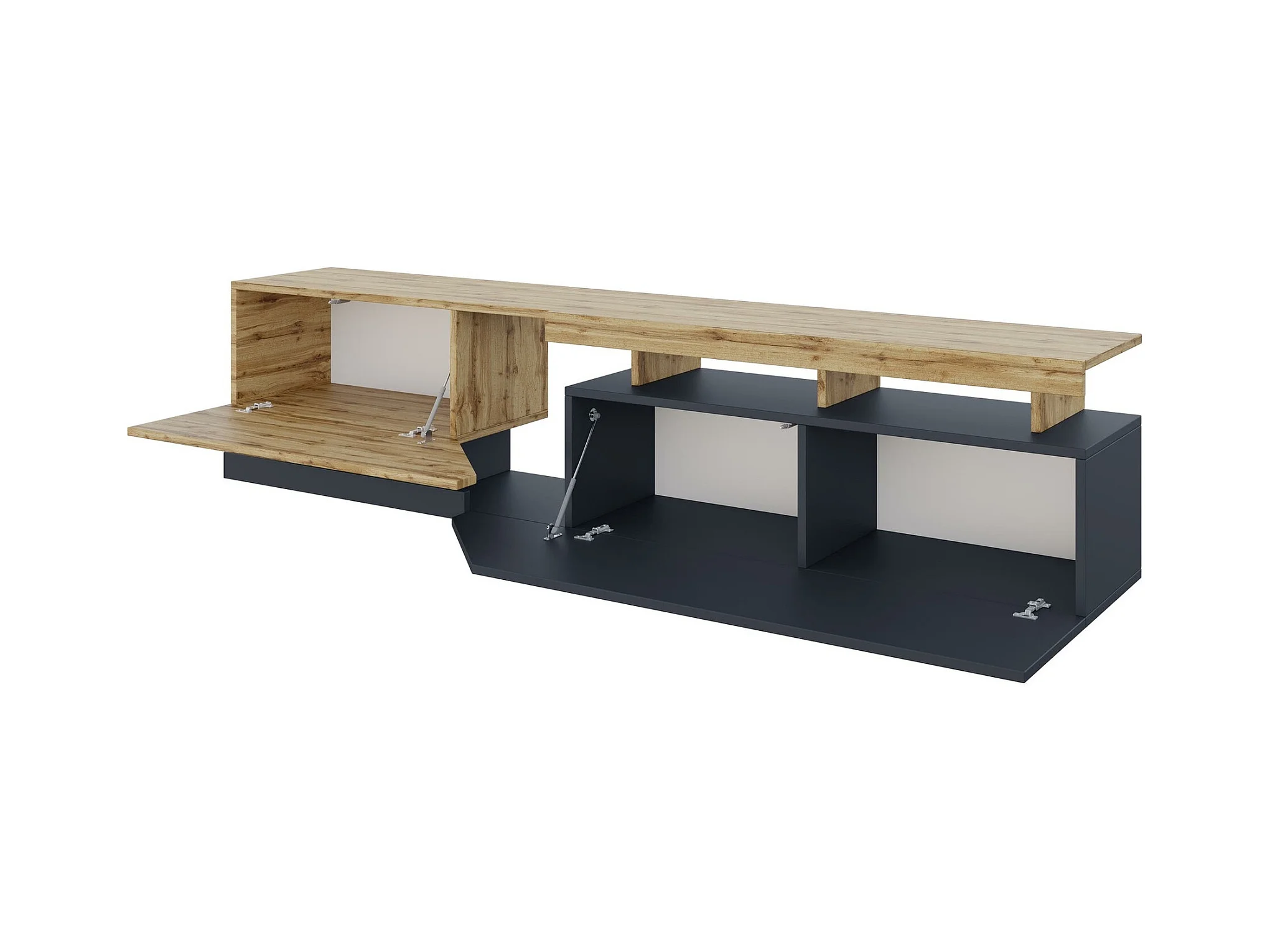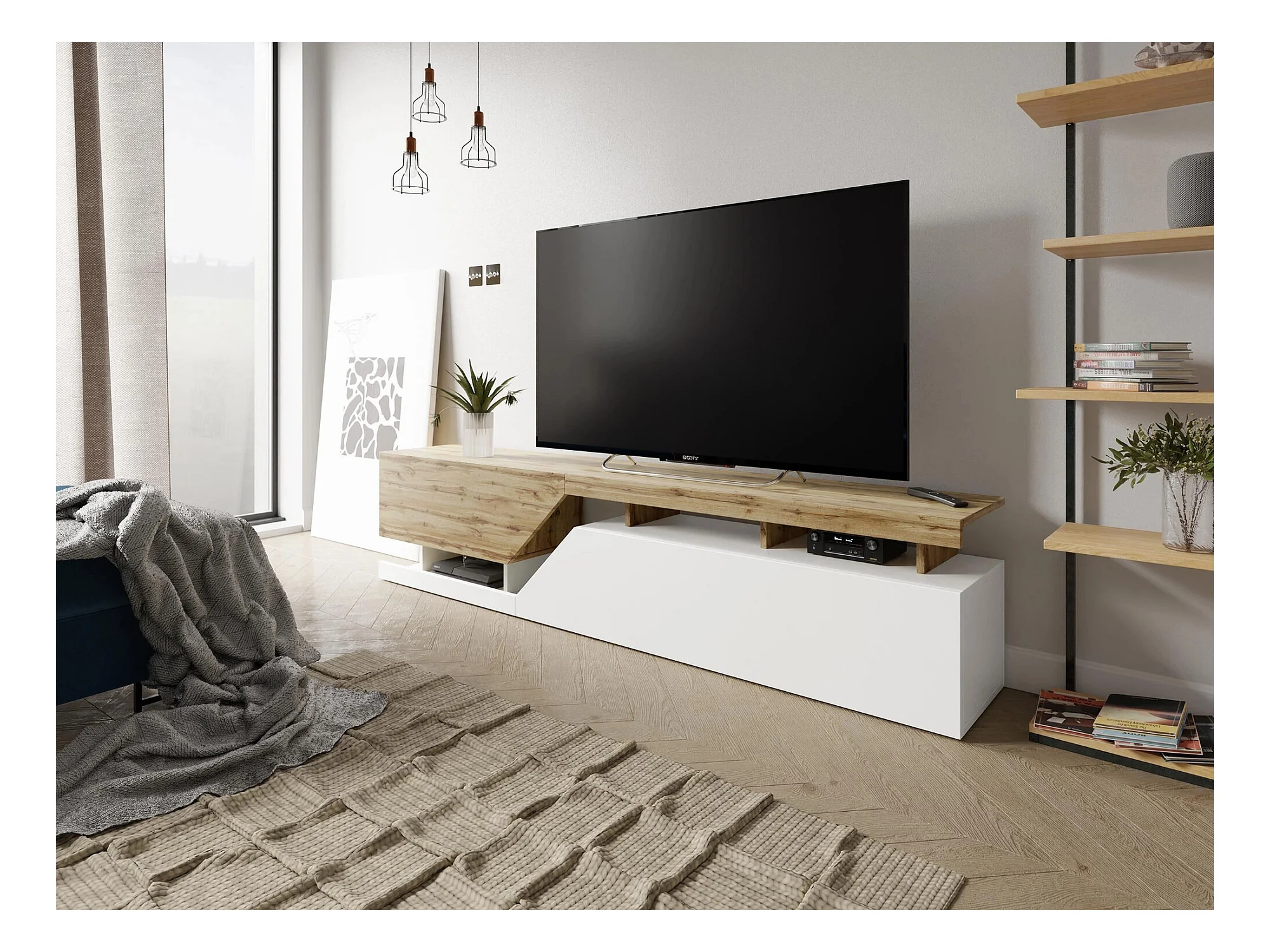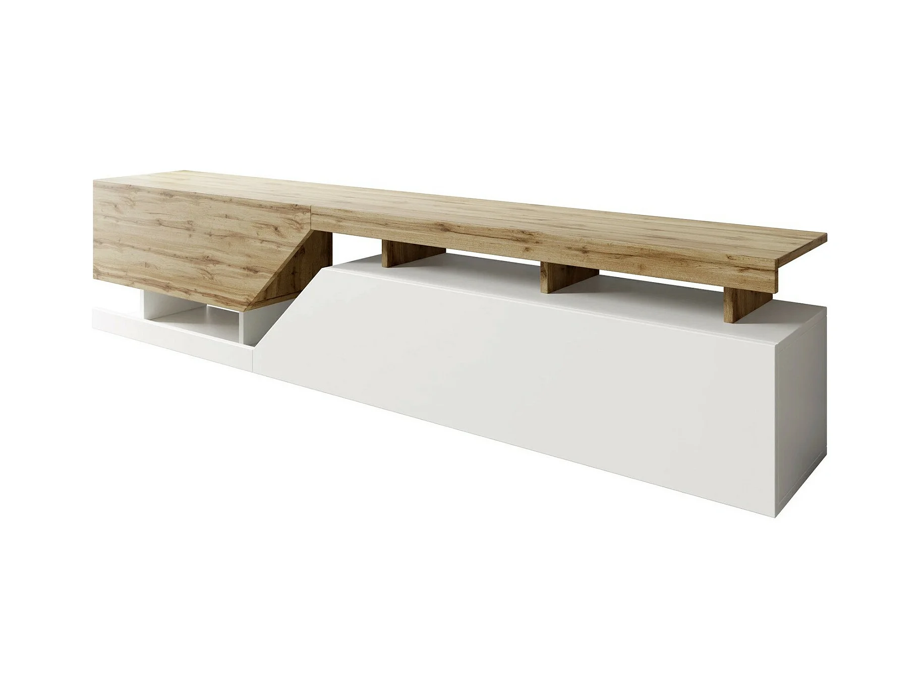 Meuble TV Comfivo Daldune 104, Blanc|Chêne wotan, 200x47x35cm