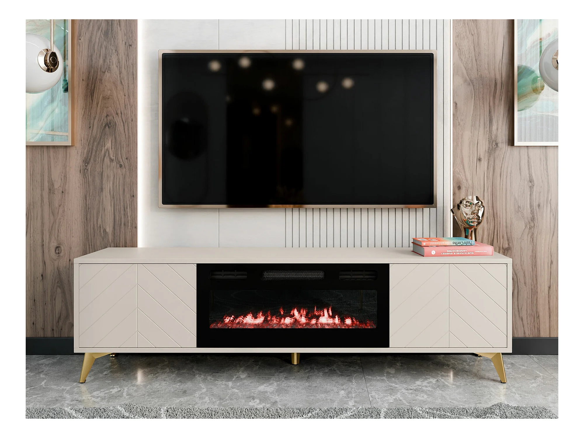 Meuble TV Comfivo Camlue 110, Beige, 184x53x40cm