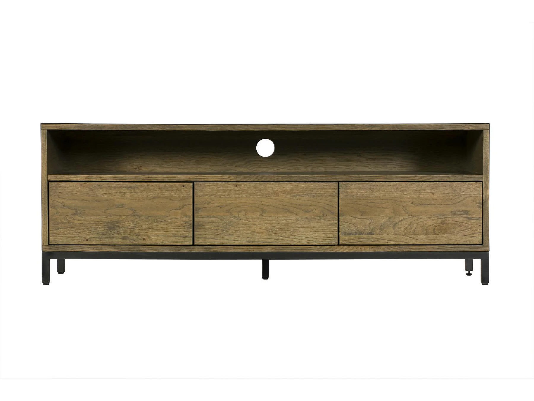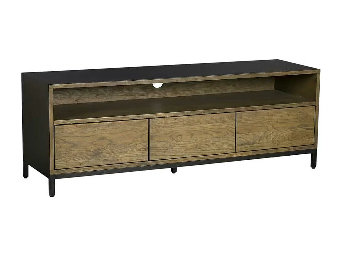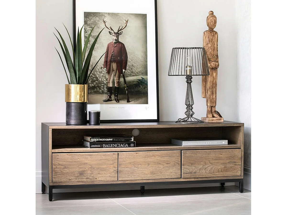 Meuble tv contemporain chêne massif encadrement métal noir HUDSON