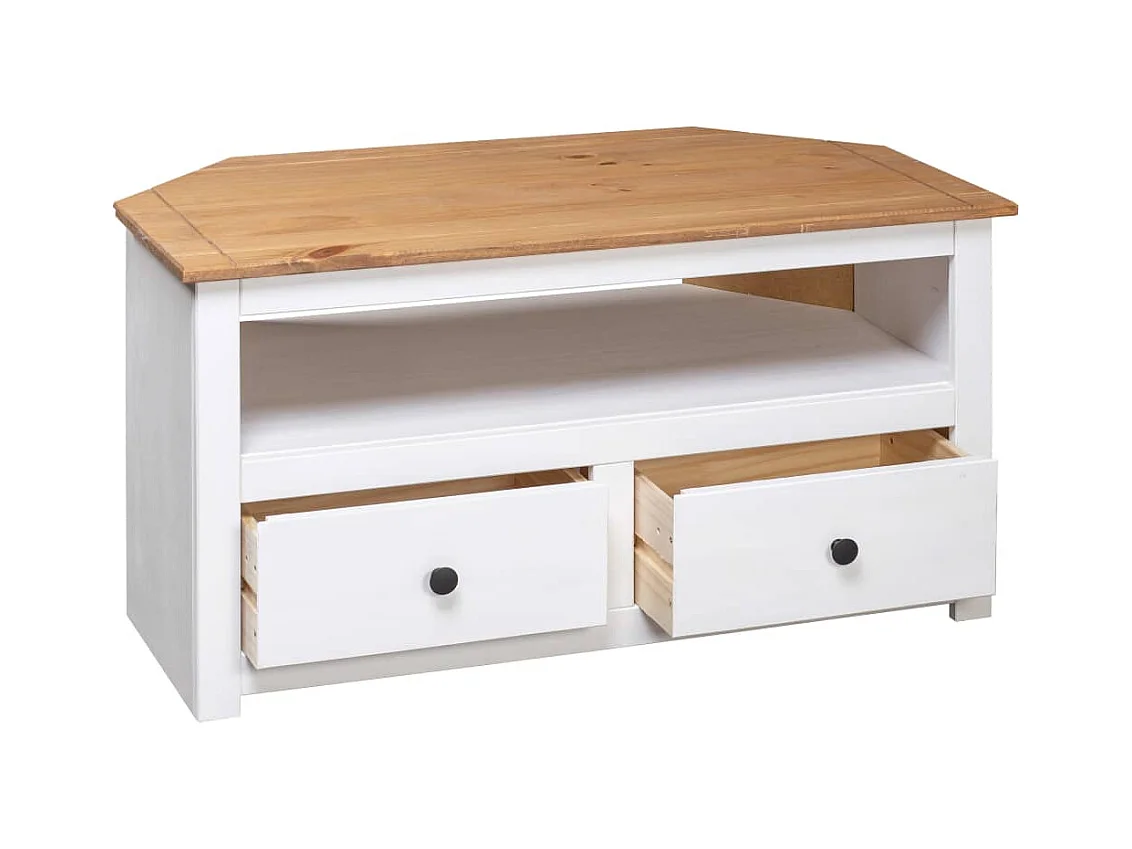Meuble TV d'angle Blanc 93x49x49 cm Pin Assortiment Panama