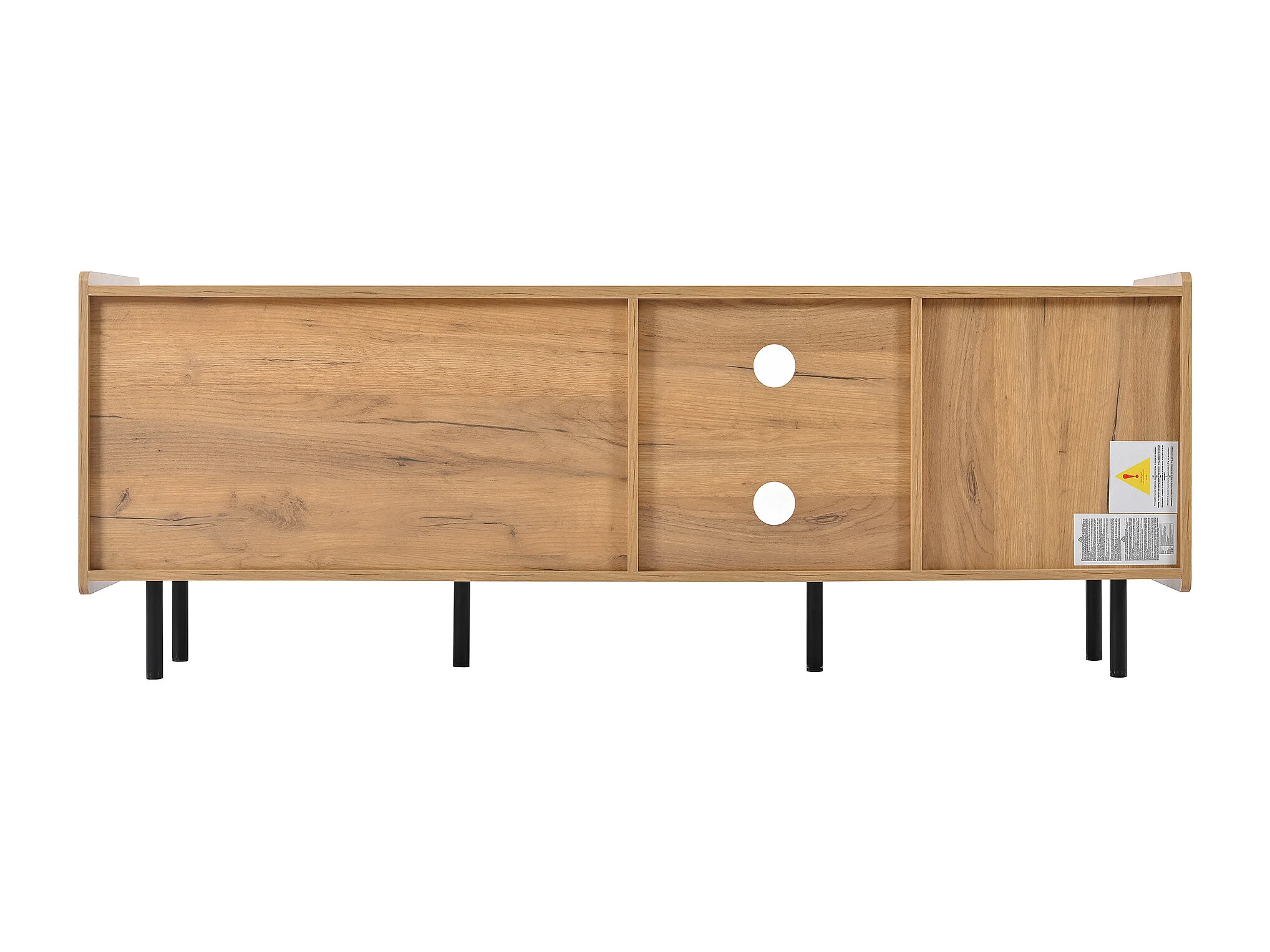 Meuble TV de 160 cm noir et bois, Style moderne avec trois portes et deux compartiments ouverts