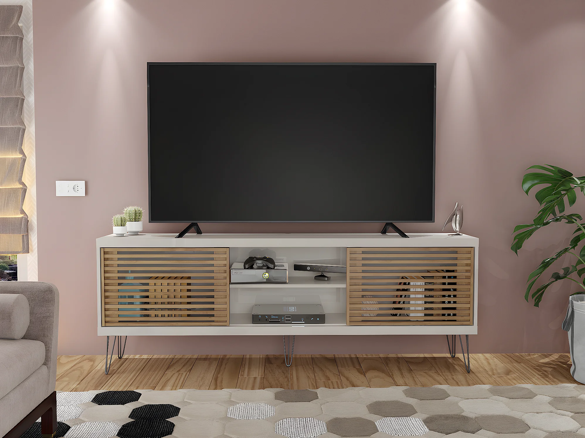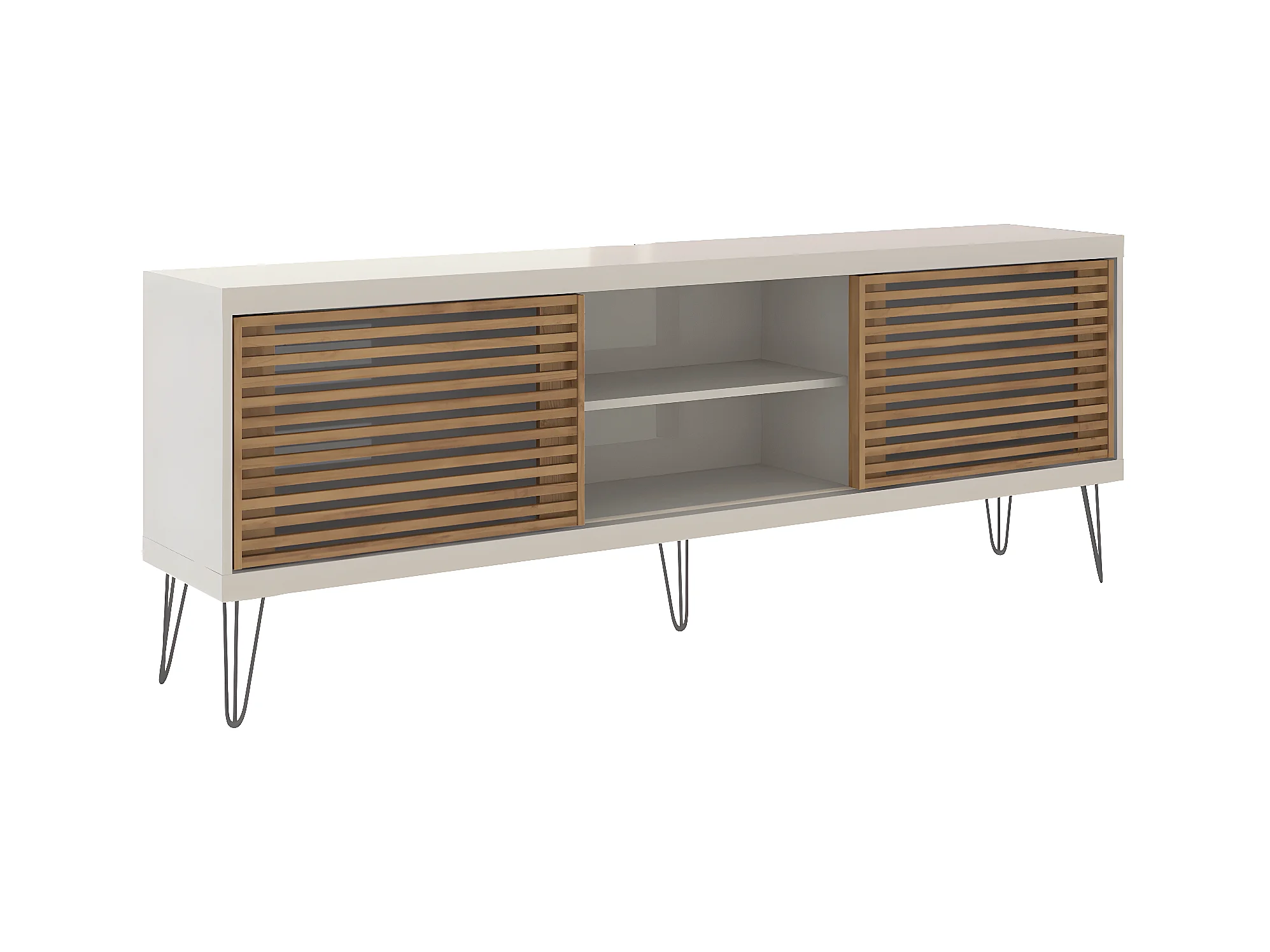 Meuble TV de 2 portes coulissantes coloris Beige / Chêne Buriti - longueur 180 x profondeur 33 x hauteur 65 cm