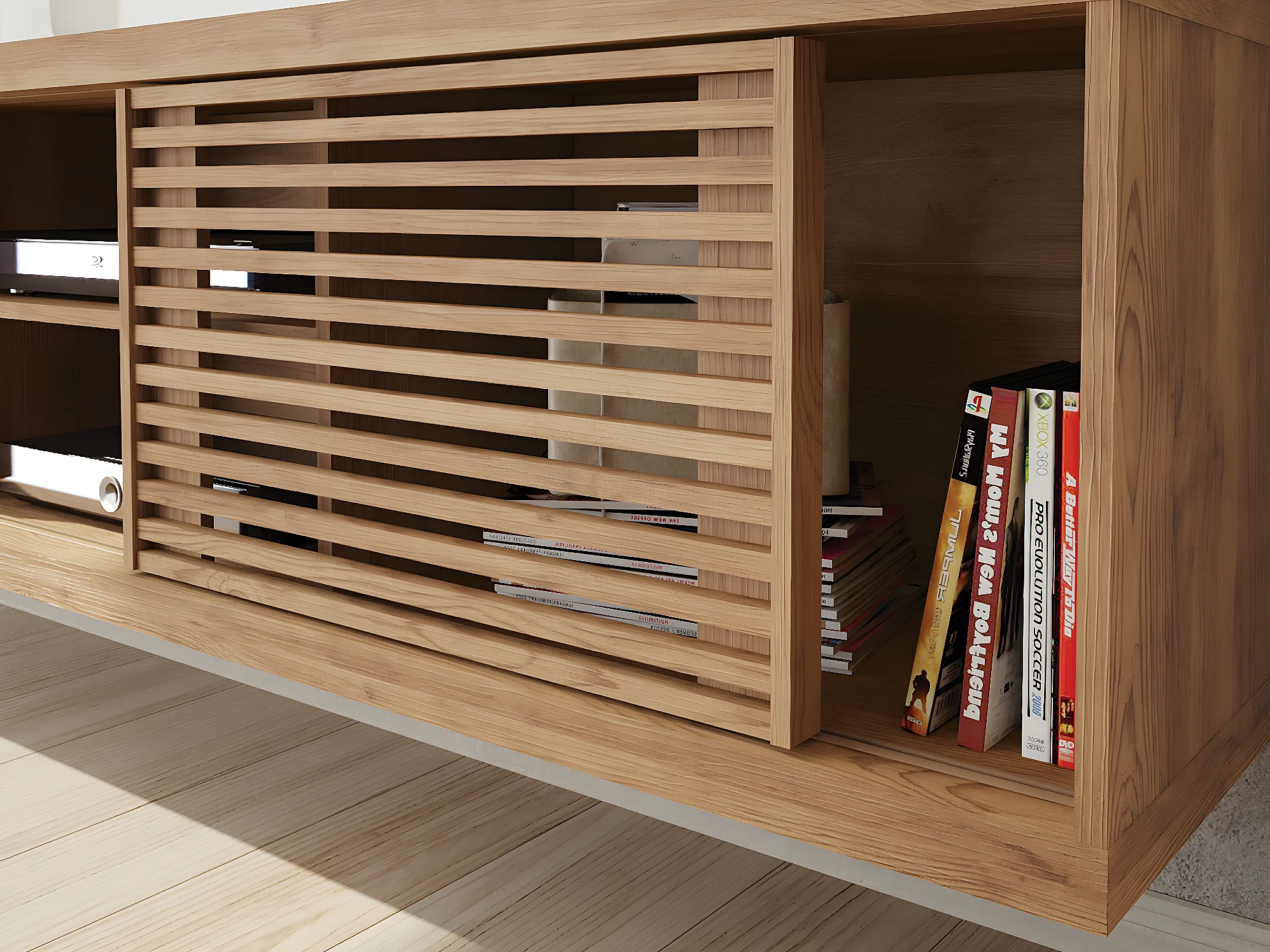 Meuble TV de 2 portes coulissantes coloris Chêne Buriti - longueur 180 x profondeur 33 x hauteur 65 cm