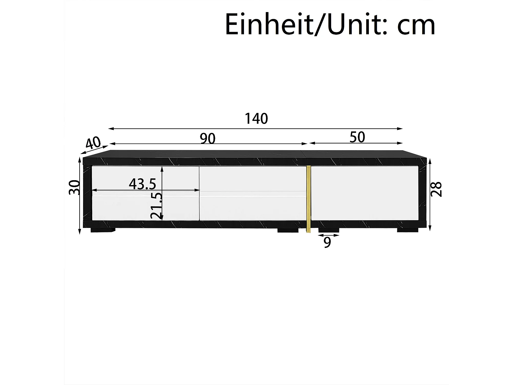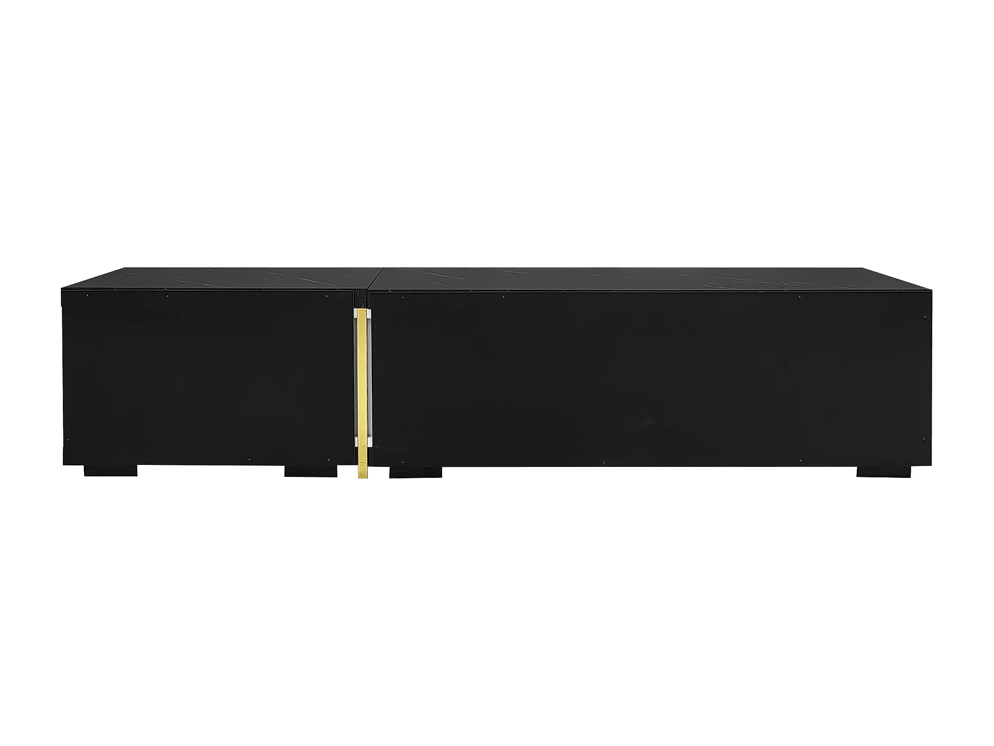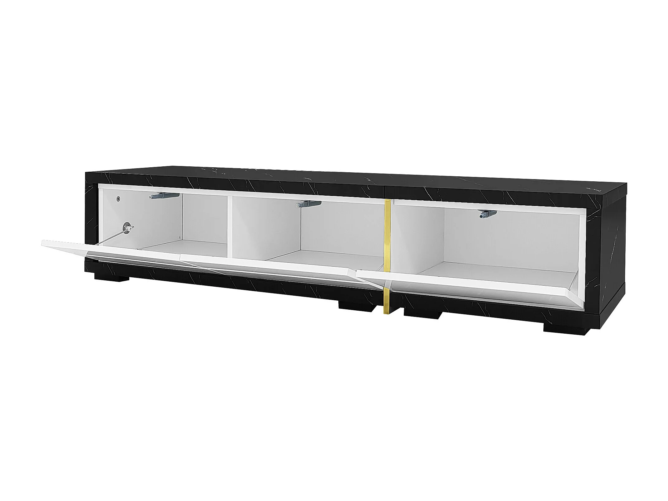 Meuble TV de Longueur Variable (140-260 cm), lowboard Fonction pivotante, Aspect marbre, Blanc