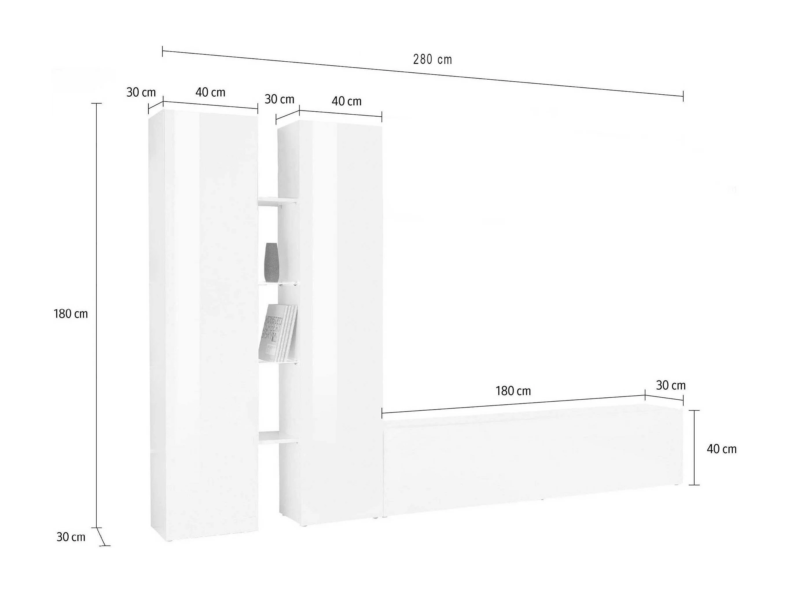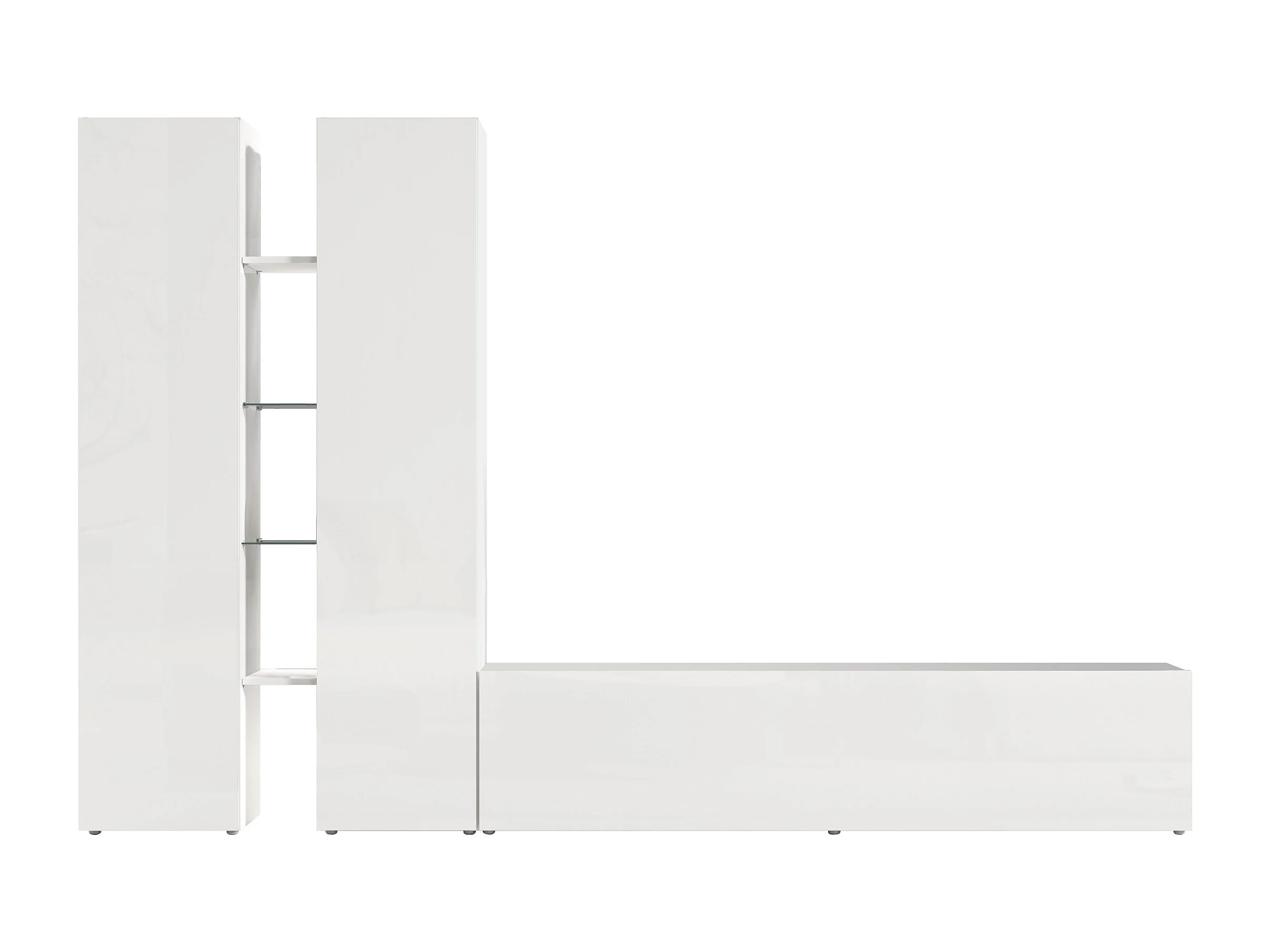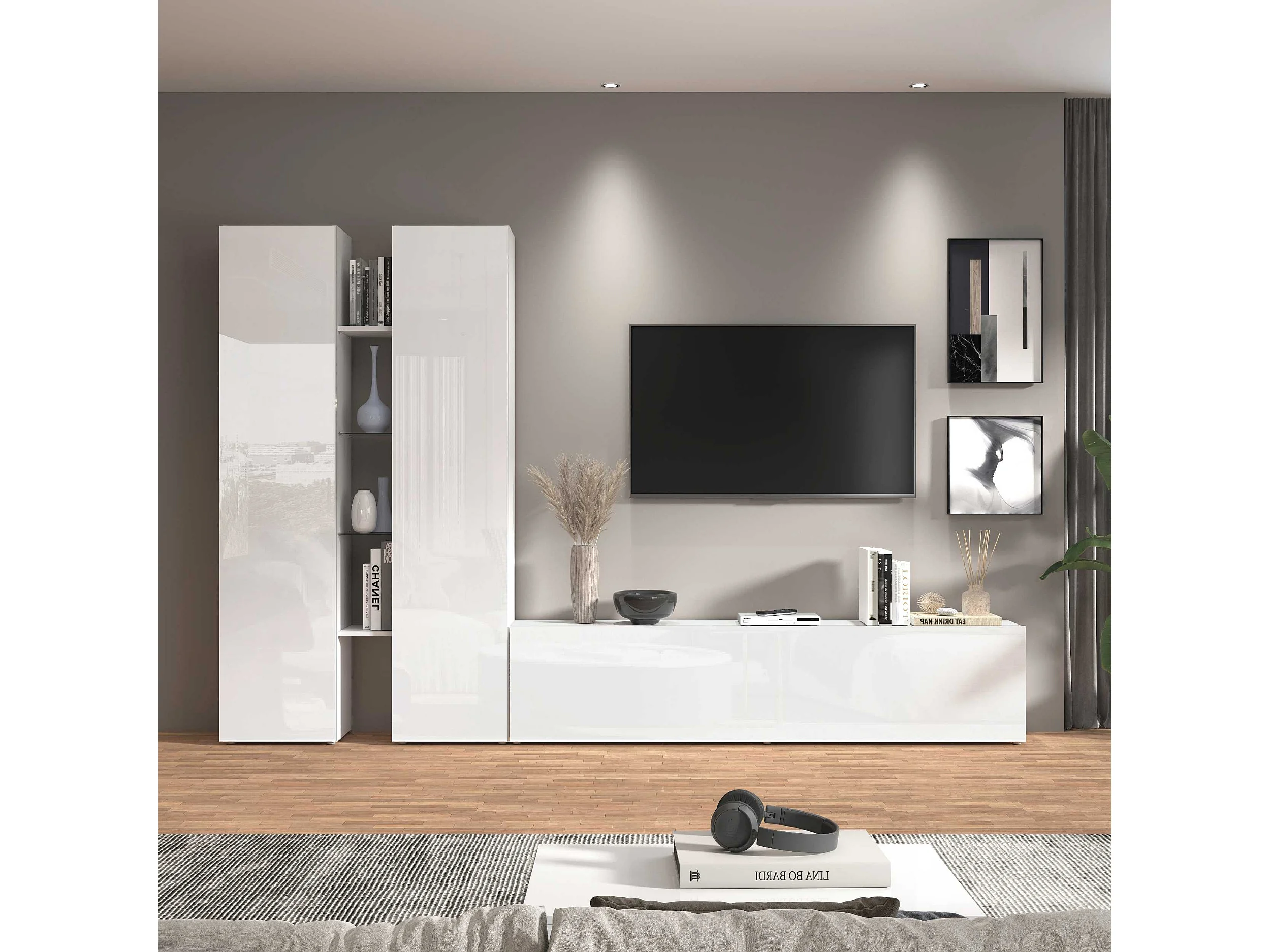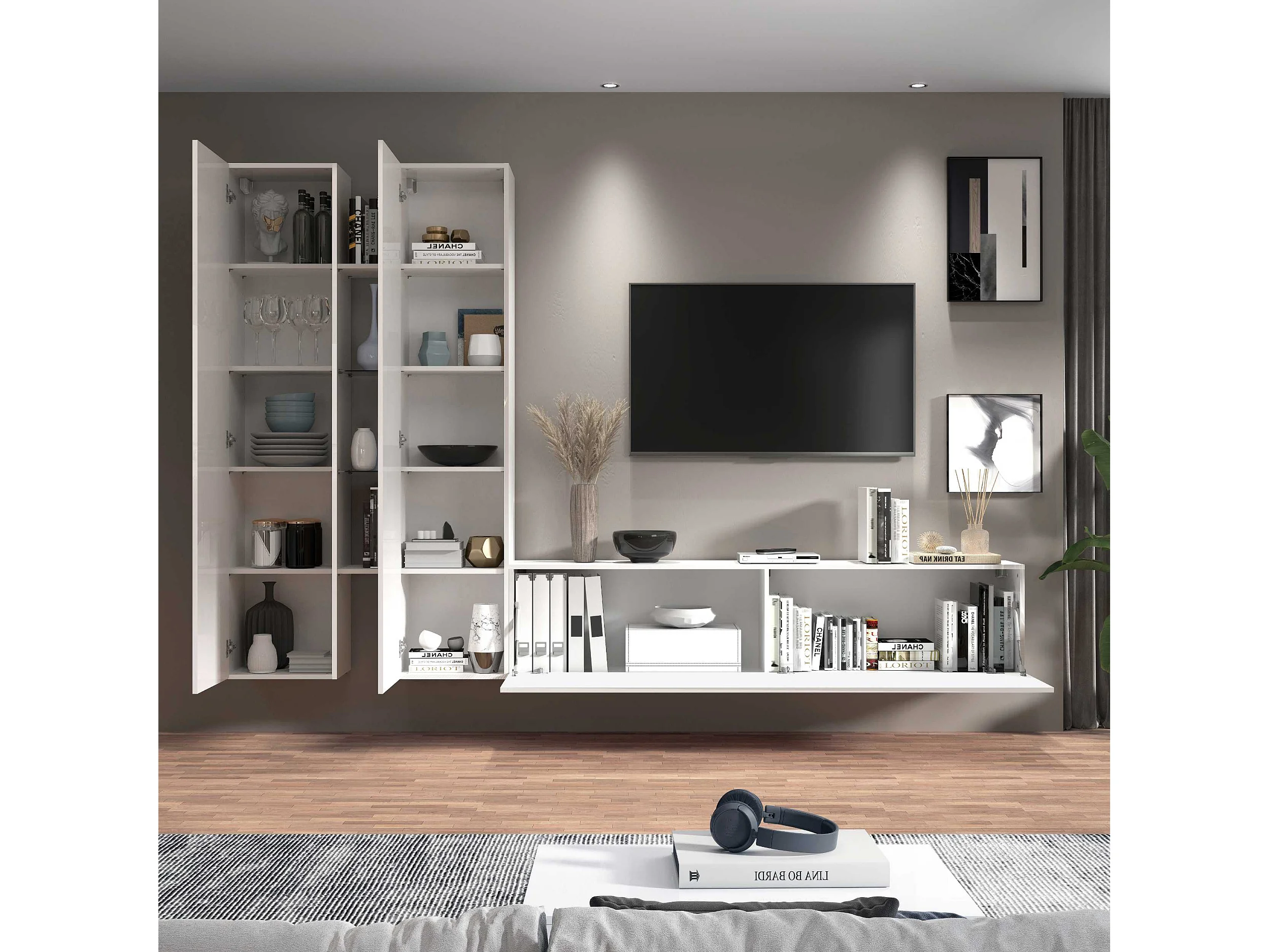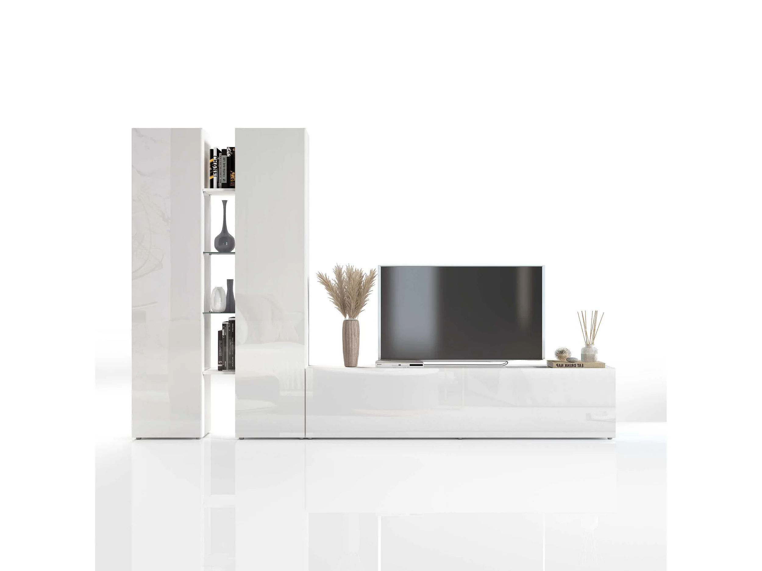 Meuble TV de salon blanc 4 étagères 2 placards Sage WH