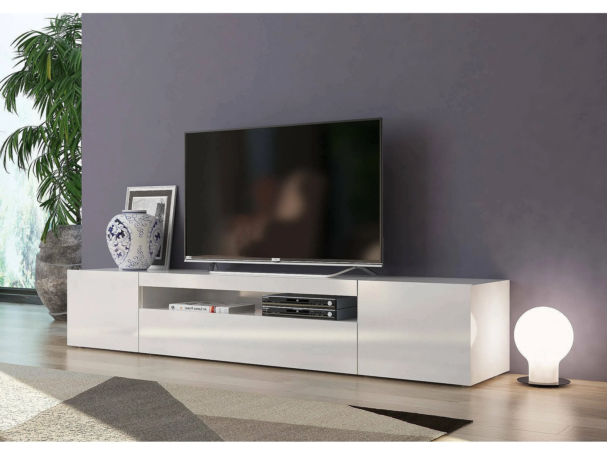 Meuble TV Dafrim, Buffet bas de salon avec 3 portes, Base pour meuble TV, 100% Made in Italy, 200x40h37 cm, Blanc brillant