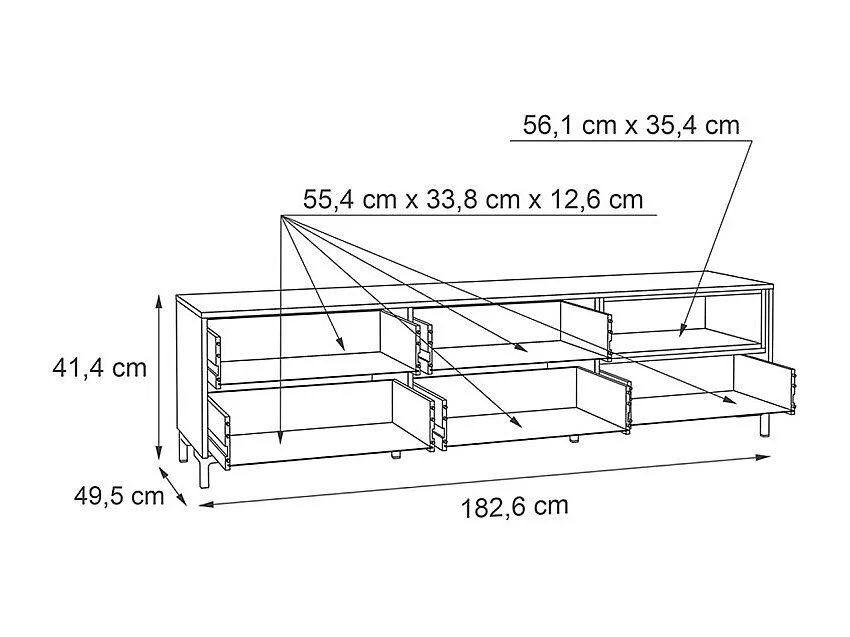 Meuble TV décor béton gris chêne clair et pieds noir - MADDY