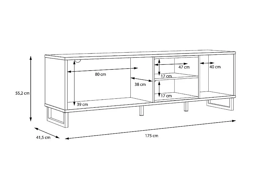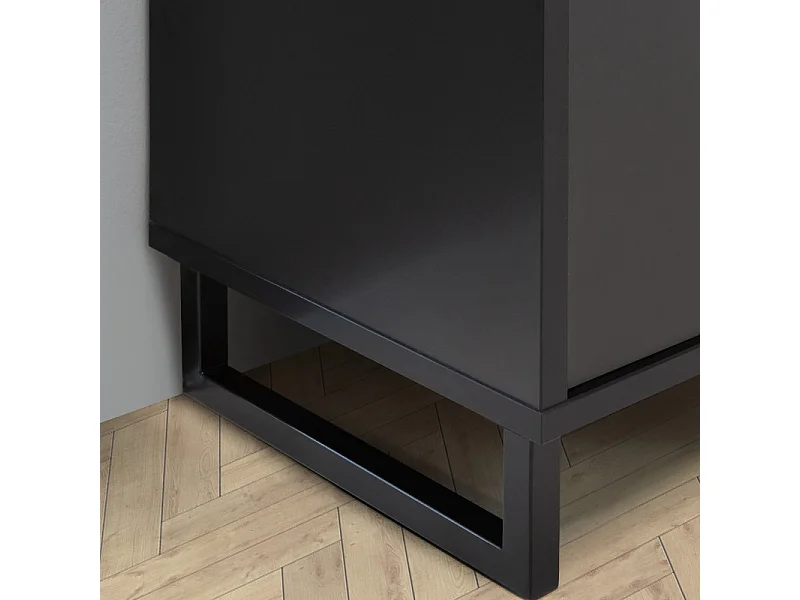 Meuble TV décor noir et chêne clair avec poignées métal noir - BAILEY