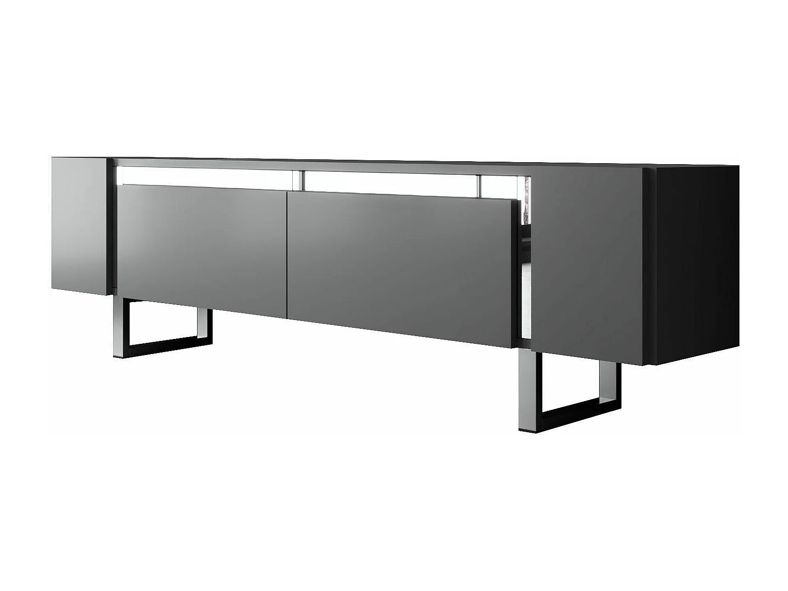 Meuble Tv design 2 portes basculantes Merany L180cm Bois Anthracite et Métal Argent