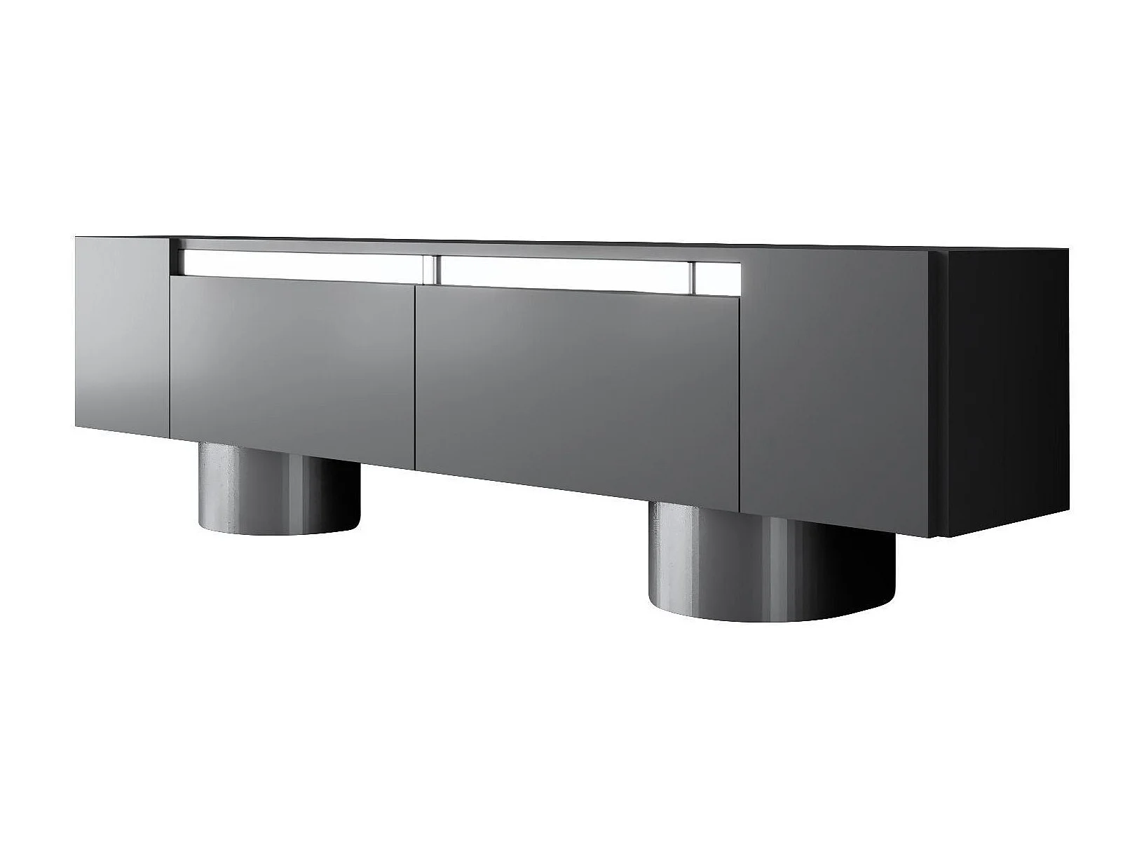 Meuble Tv design 2 portes basculantes Merna L180cm Bois Anthracite et Métal Argent