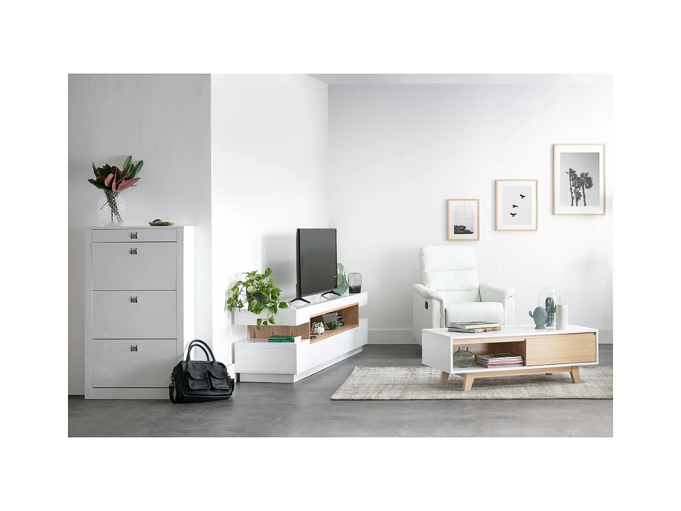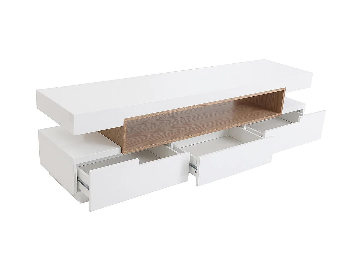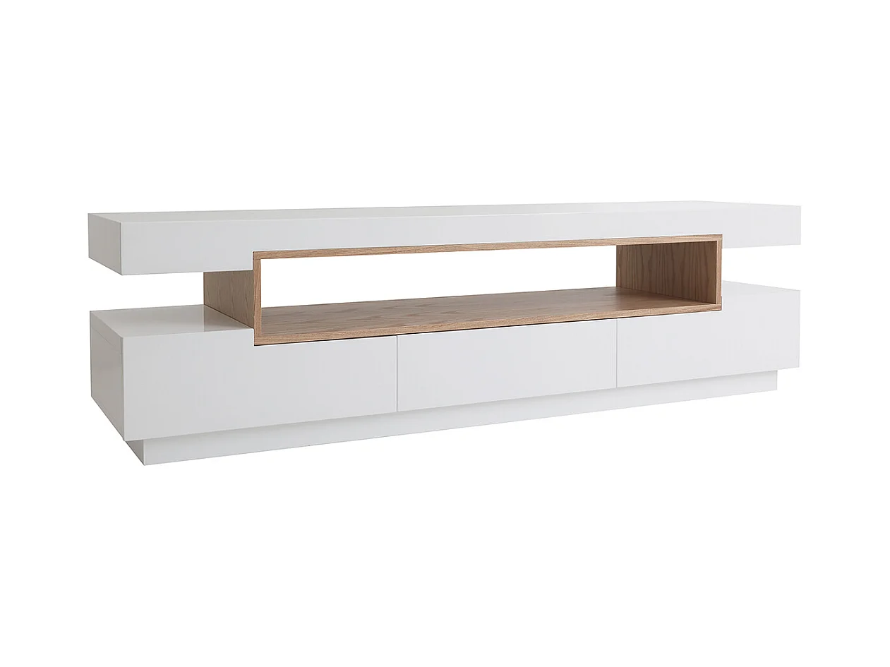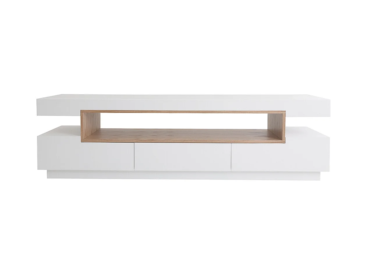 Meuble TV design blanc et bois L200 cm LIVO