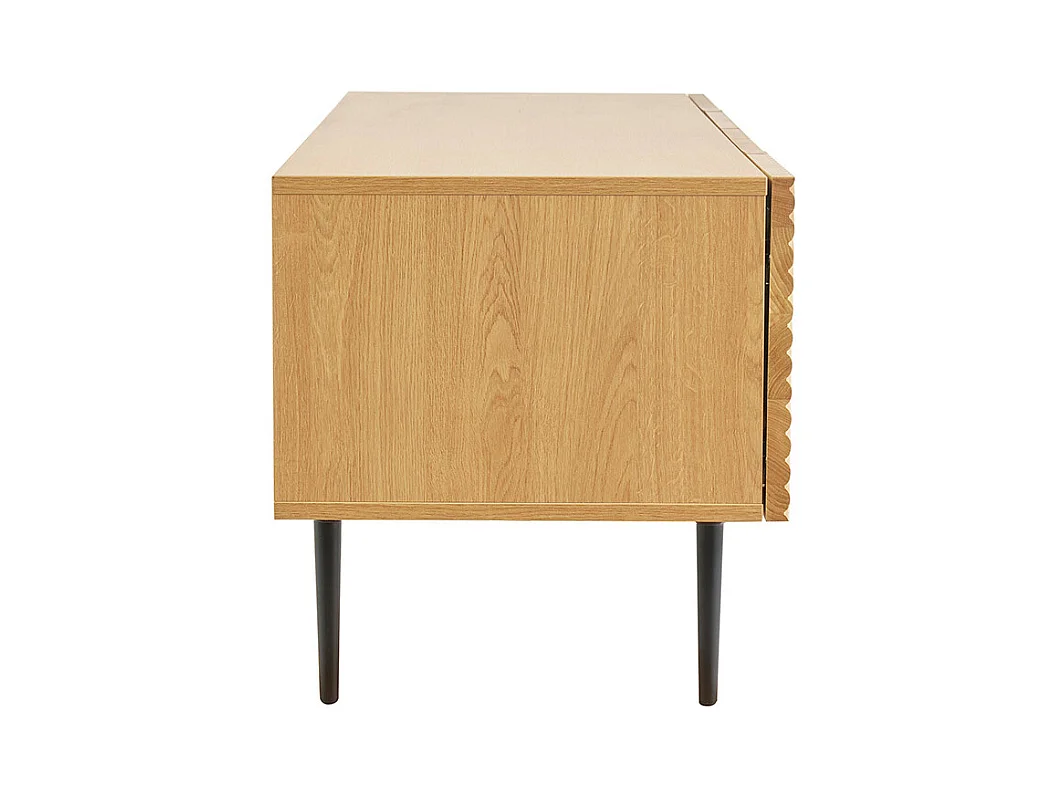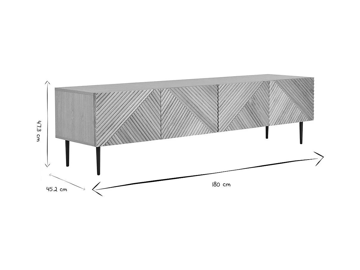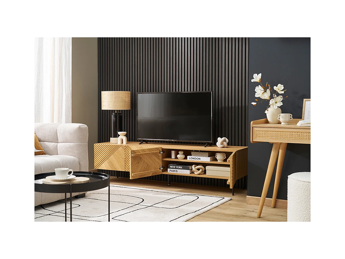 Meuble TV design en bois clair chêne massif gravé et métal noir 4 portes L180 cm ARCHIPEL