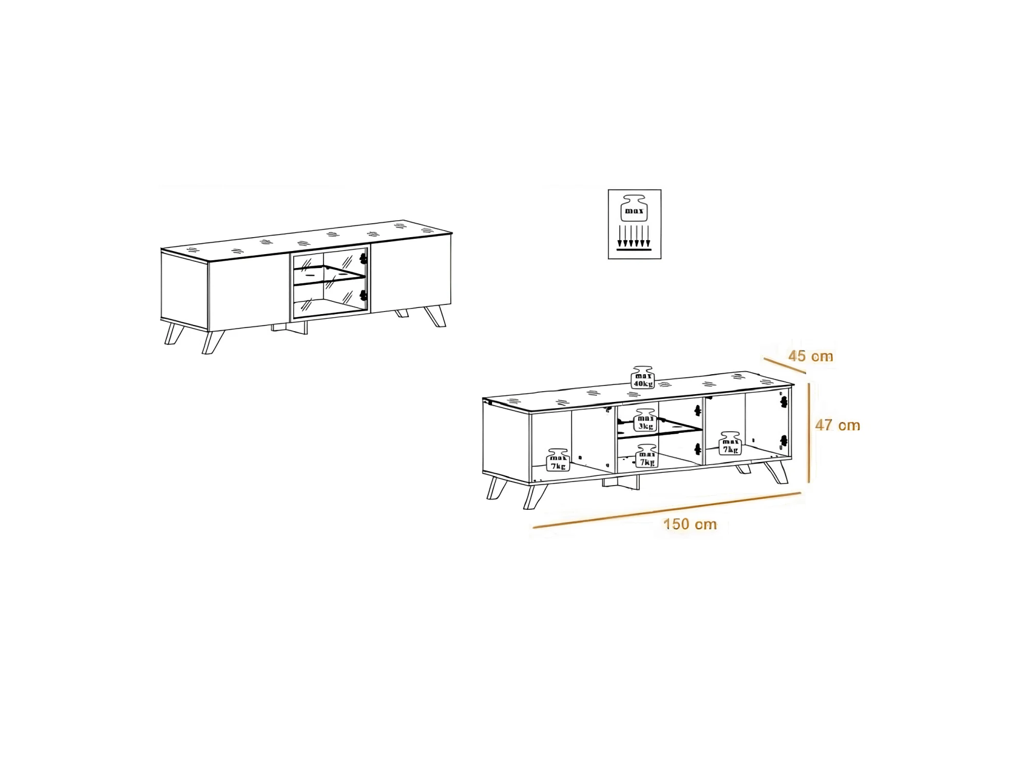 Meuble TV Design LED "Thin" 150cm Noir & Naturel