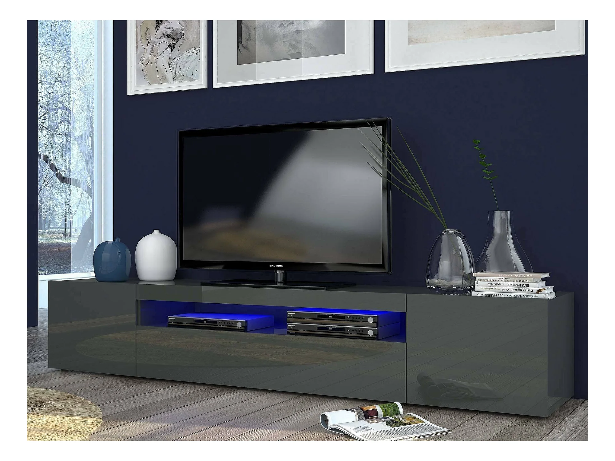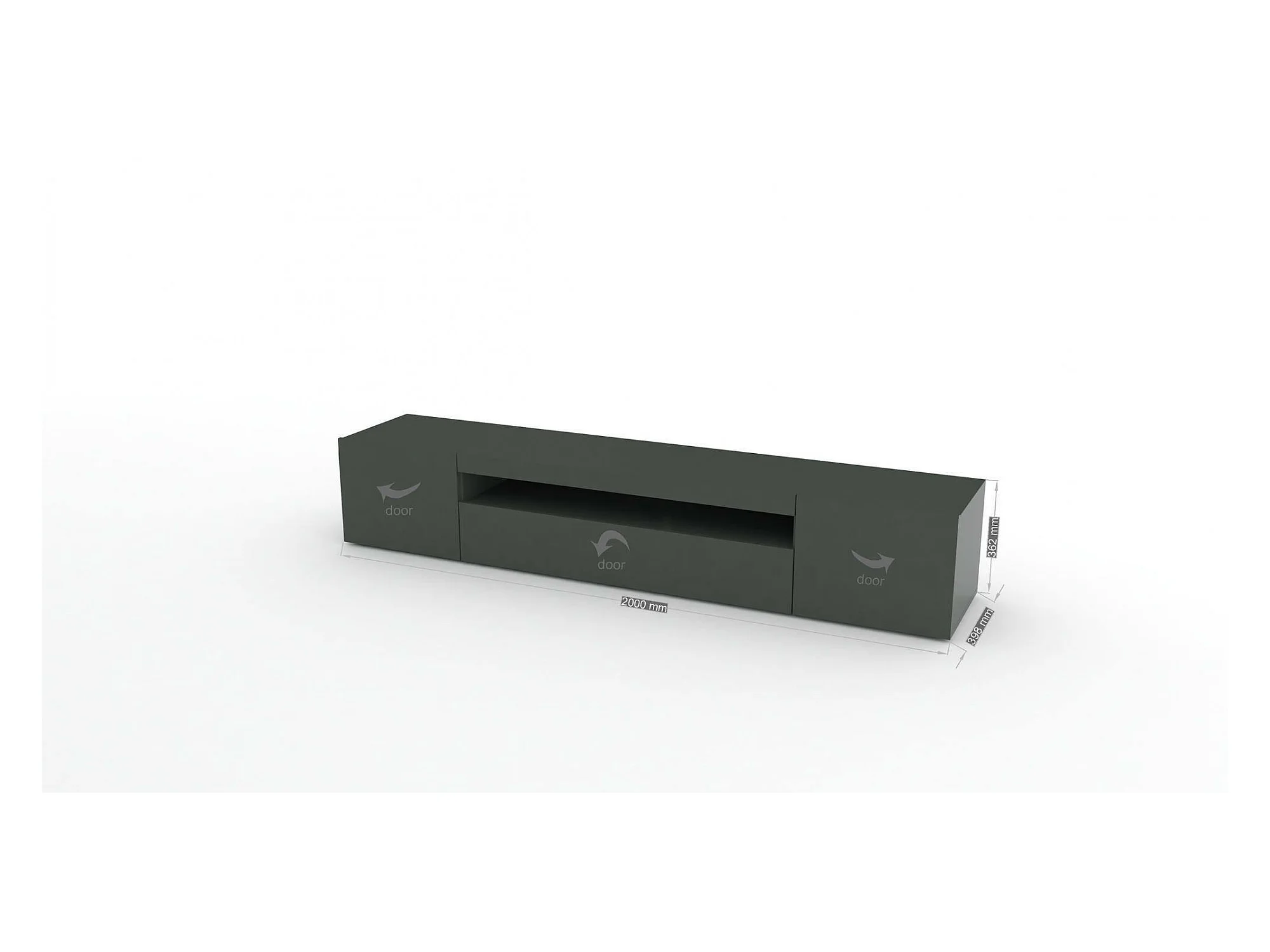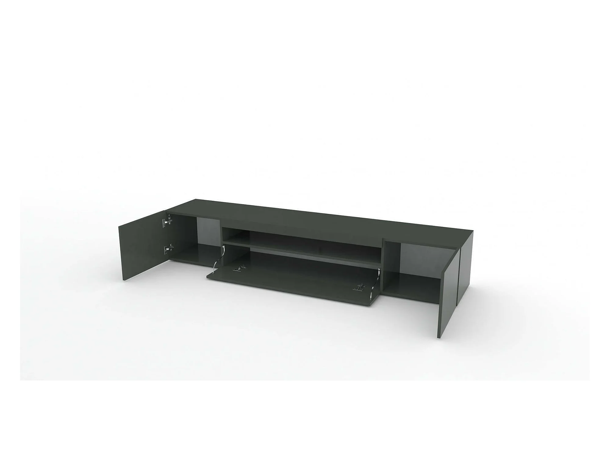Meuble TV Dafrim, Buffet bas de salon avec 3 portes, Base pour meuble TV, 100% Made in Italy, 200x40h37 cm, Anthracite Brillant, avec lumière LED