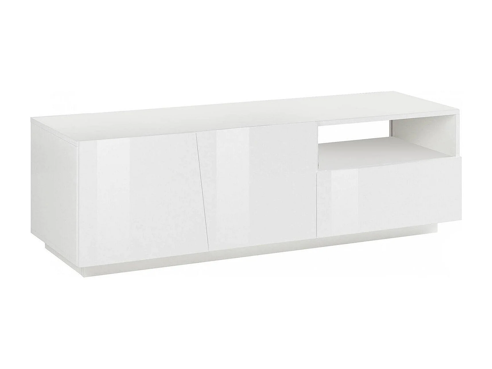 Meuble TV Dlandon, Buffet bas de salon avec 2 portes, Base pour meuble TV, 100% Made in Italy, 150x43h46 cm, Blanc brillant