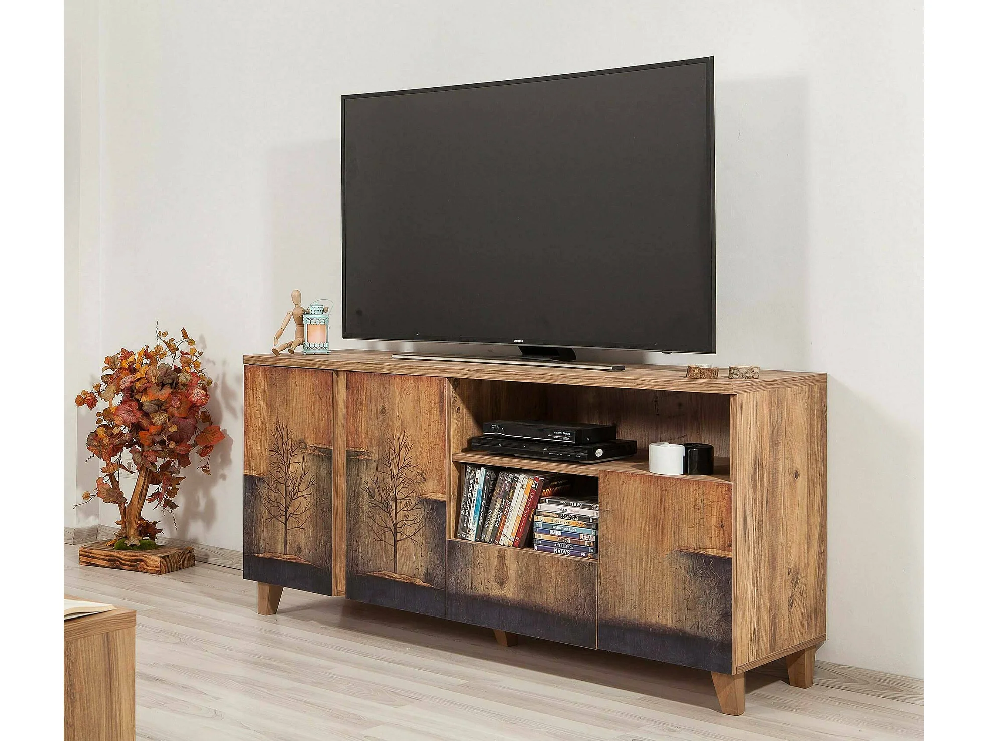 Meuble TV Dpedrazzin, Buffet de salon, Armoire basse pour TV, Base murale de rangement, 160x45 h76 cm, Chêne