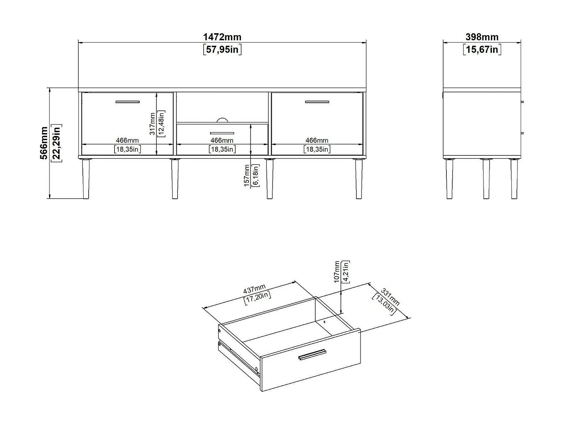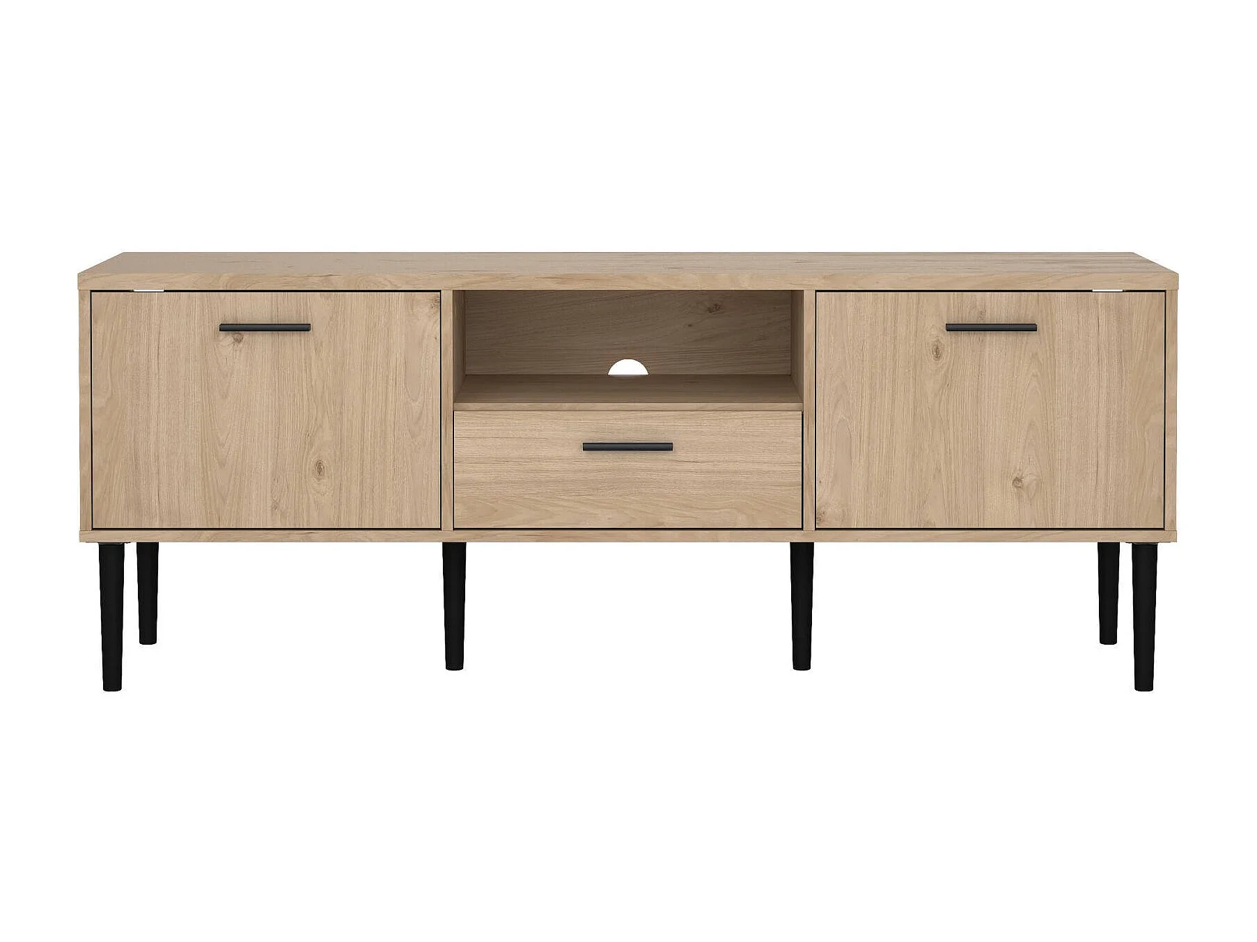 Meuble TV Dtoc, Buffet de salon, Armoire basse pour TV, Base murale de rangement, 147x40 h57 cm, Chêne clair