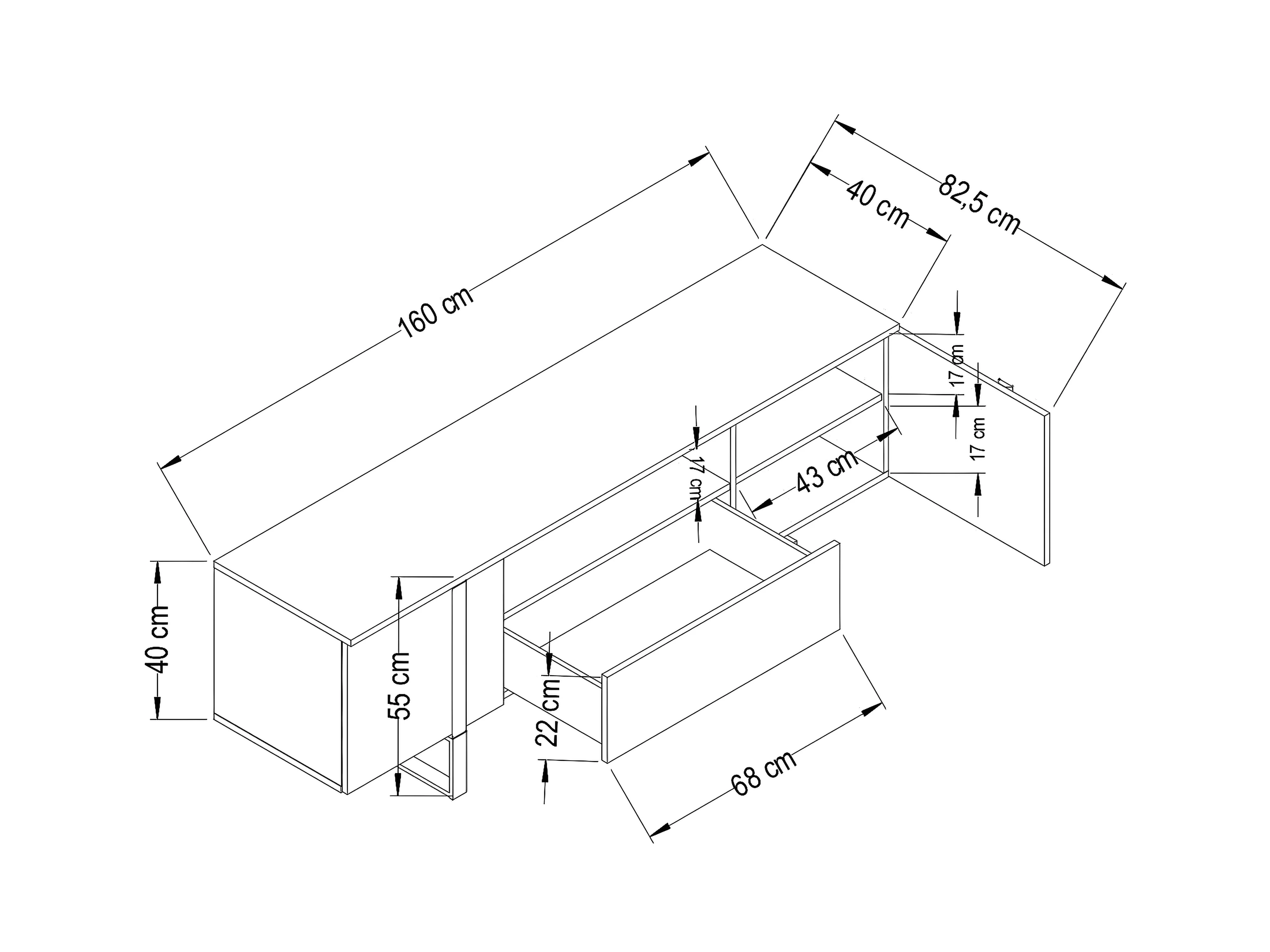Meuble TV DUNE 2 portes 1 tiroir 55x160x40 cm chêne TALESA