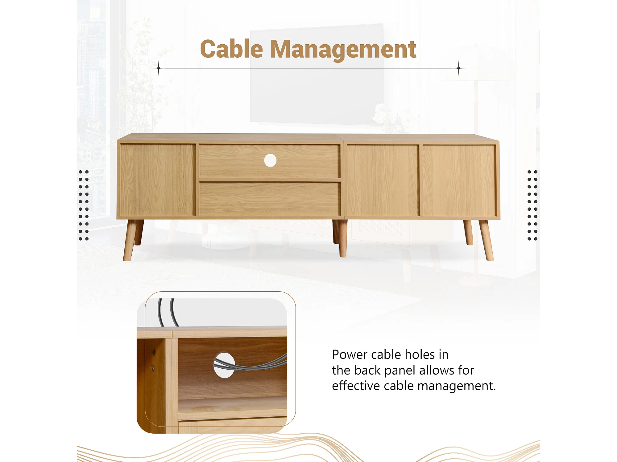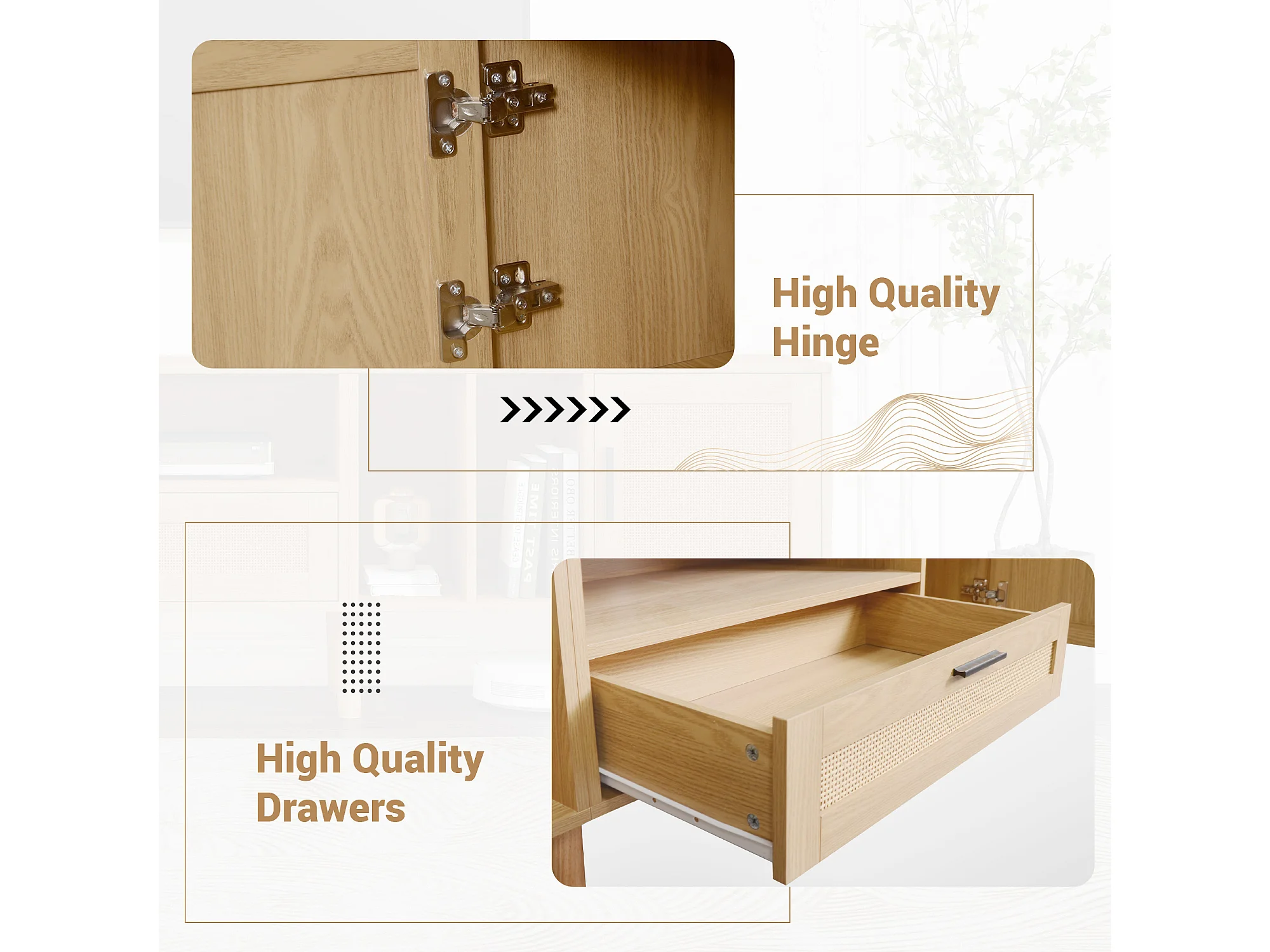 Meuble TV effet bois décoration en rotin 2 portes et un tiroir 180cm BRAVVANS