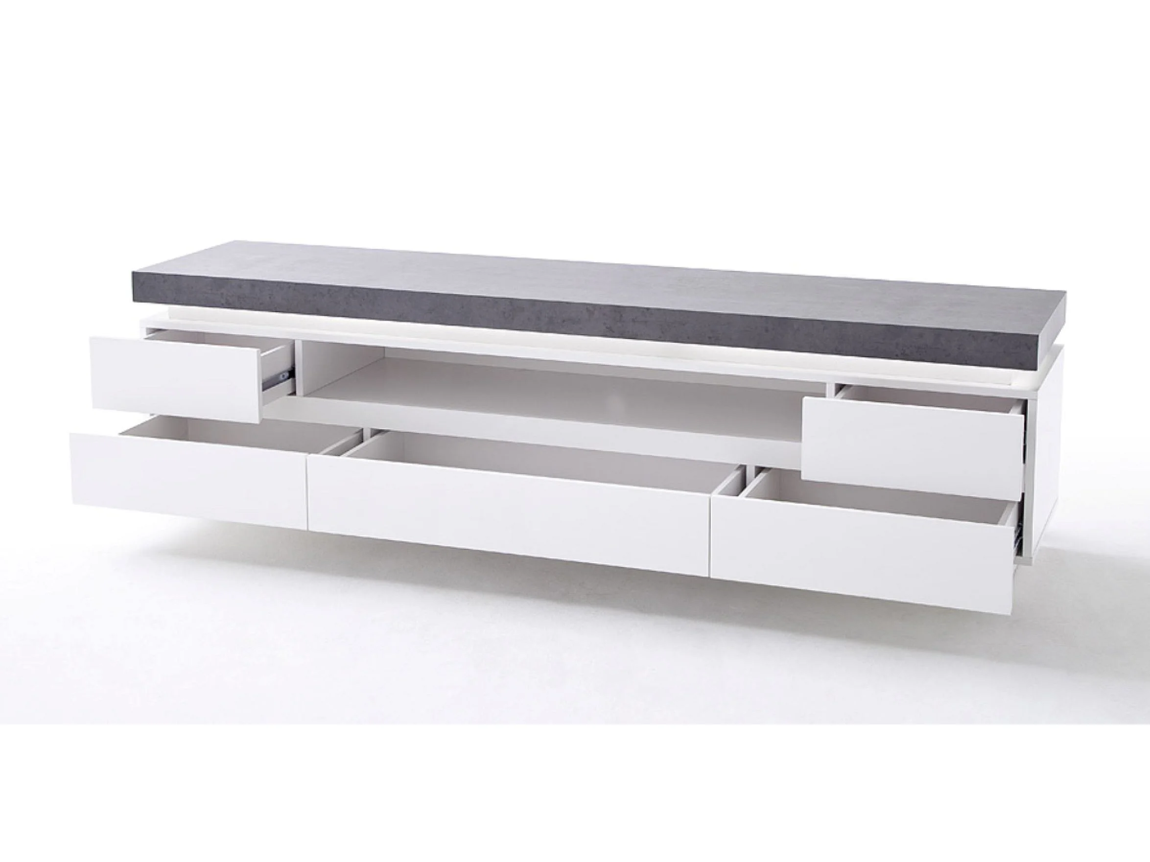 Meuble TV en bois coloris blanc mat, gris béton - Longueur 175 x Hauteur 48 x Profondeur 40 cm