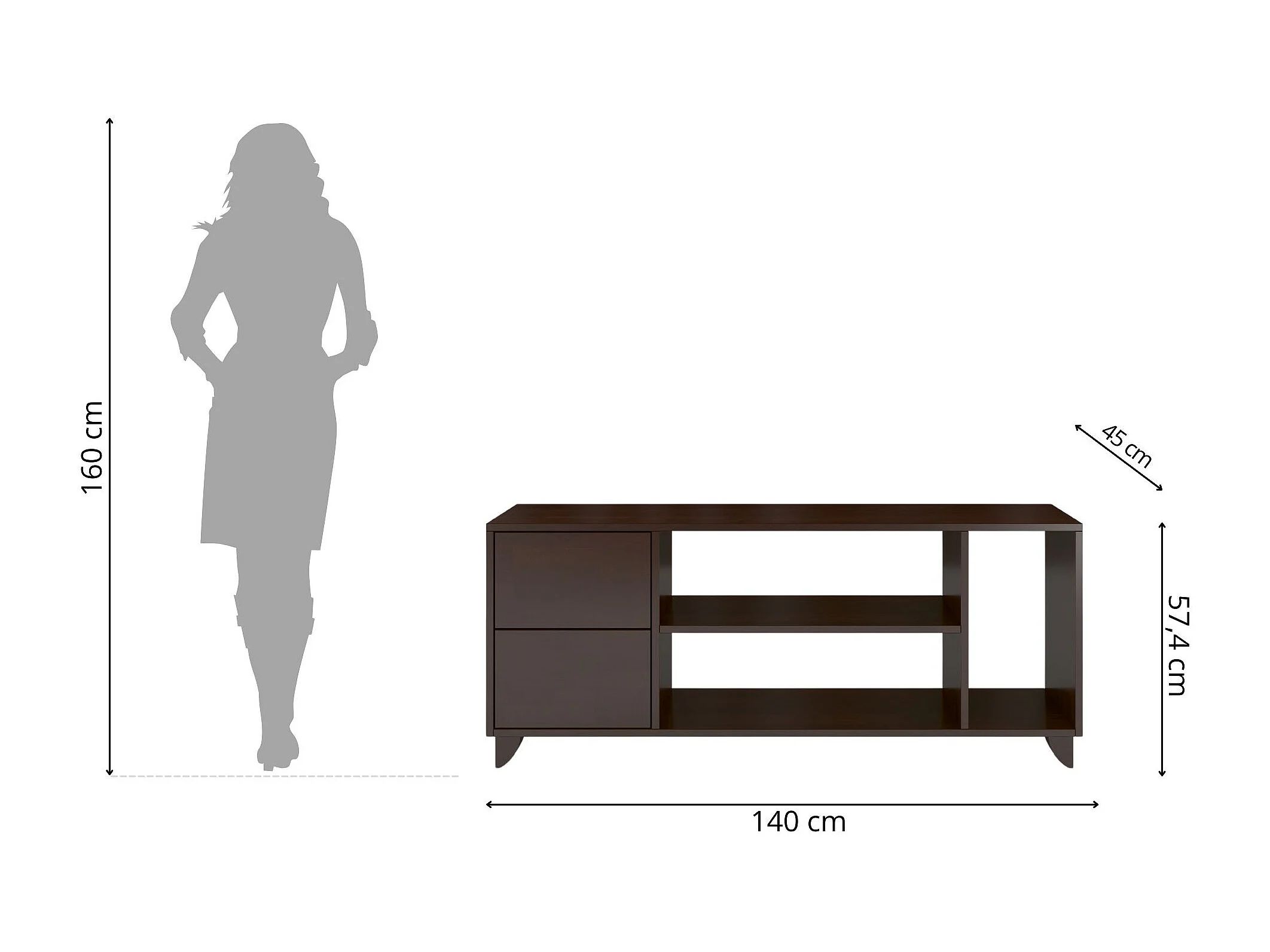 Meuble TV en bois de hêtre VISBY VIVECA sur pieds / palissandre