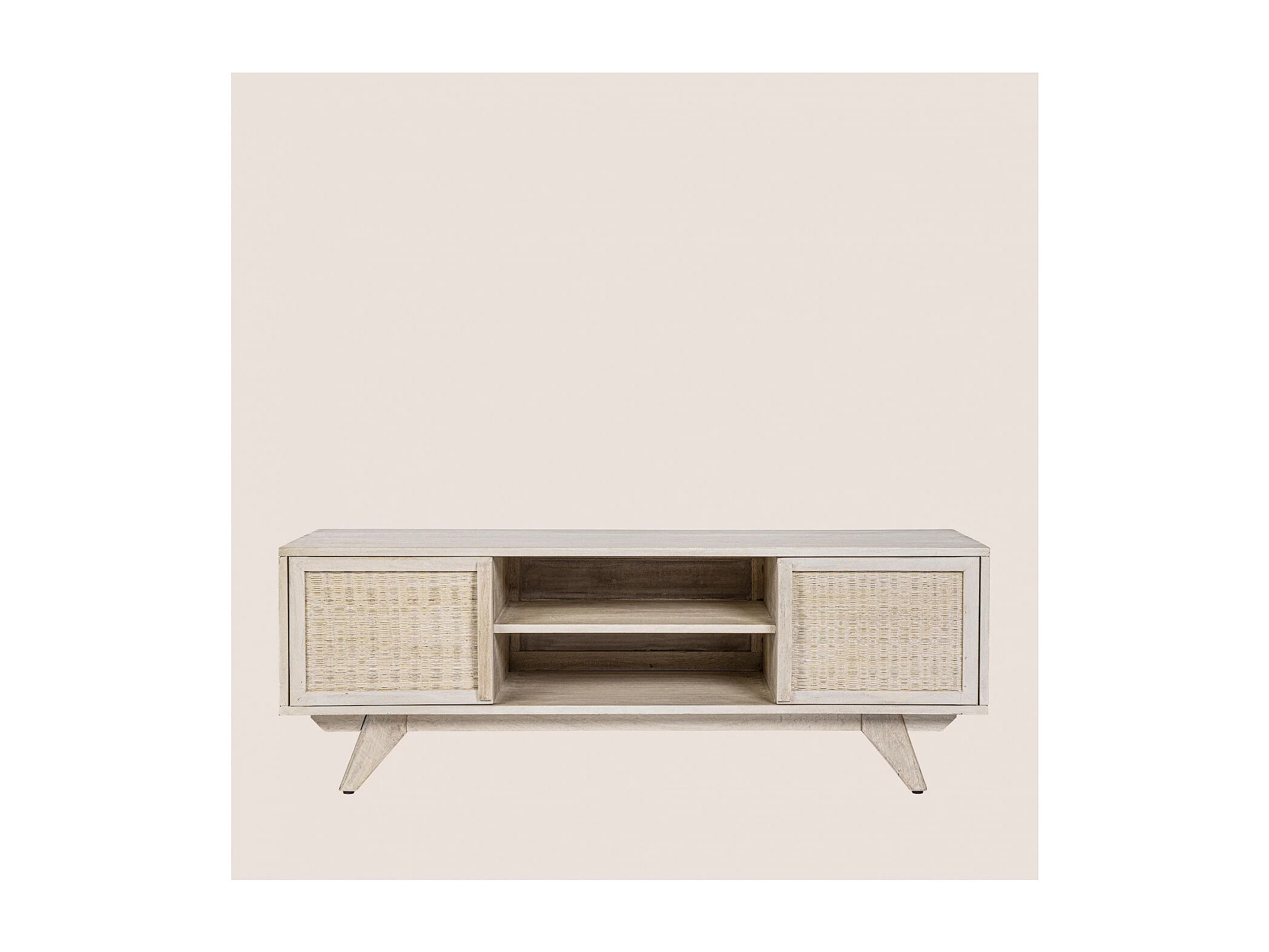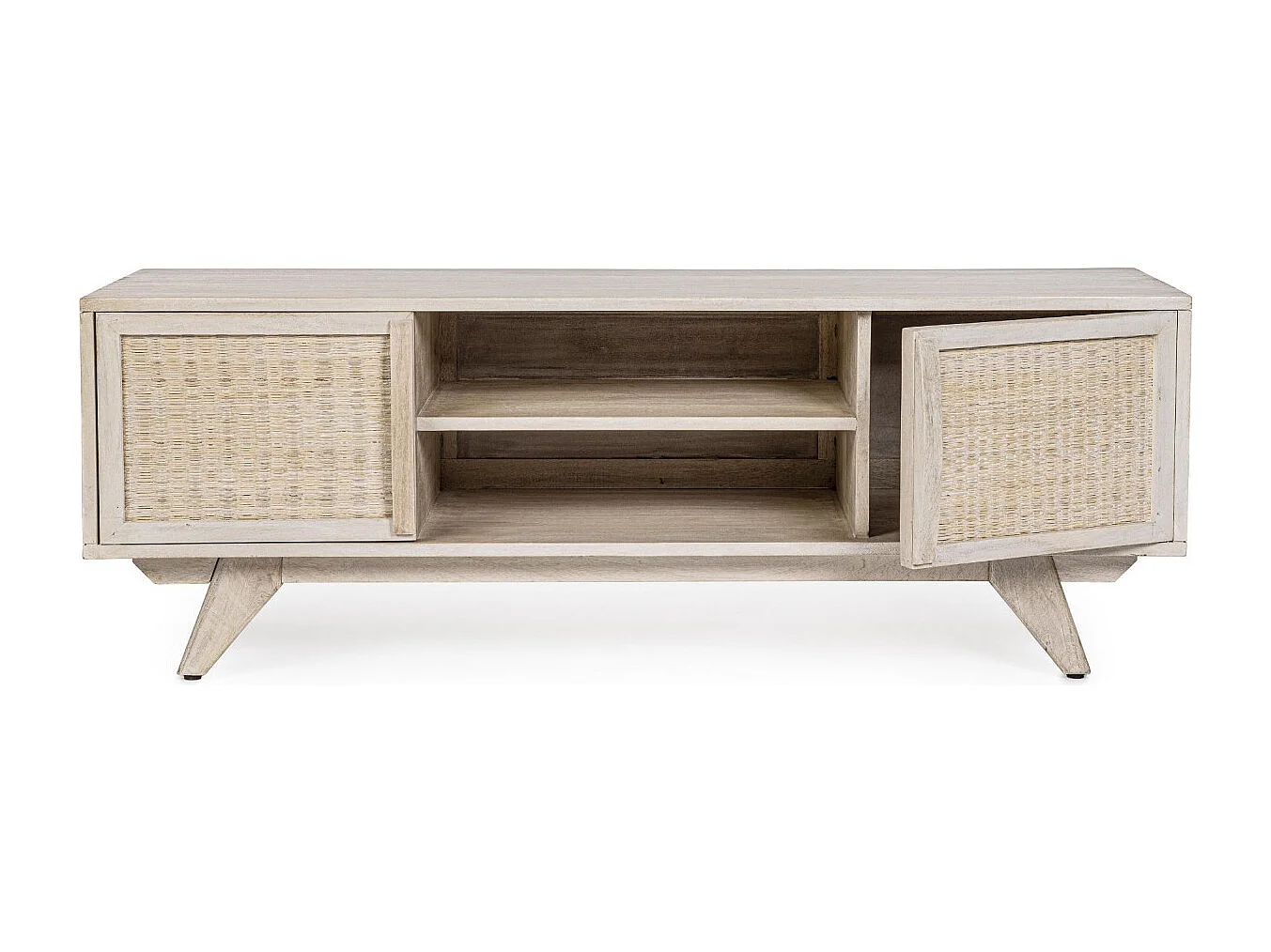 Meuble TV en bois de manguier blanchi 2 portes 2 niches - SHANNA